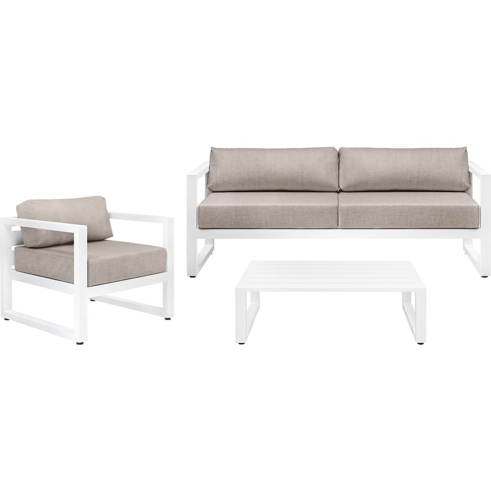 Комплект уличной мебели CAPRI создает комфортное пространство для отдыха в саду, на террасе, у бассейна. В наборе представлен диван, кресло и журнальный столик. Каркас изготовлен из высокопрочного алюминия с полимерным покрытием, на сиденьях предусмотрены удобные подушки пепельно-коричневого оттенка. Коллекция садовой мебели CAPRI привлекает внимание современным дизайном и долговечностью. Алюминиевая мебель отличается прочностью и длительным сроком службы, не боится осадков и ультрафиолета. Отсутствие декора позволит вписать набор в интерьер любого стиля. Уличный комплект подойдет для размещения трех человек.