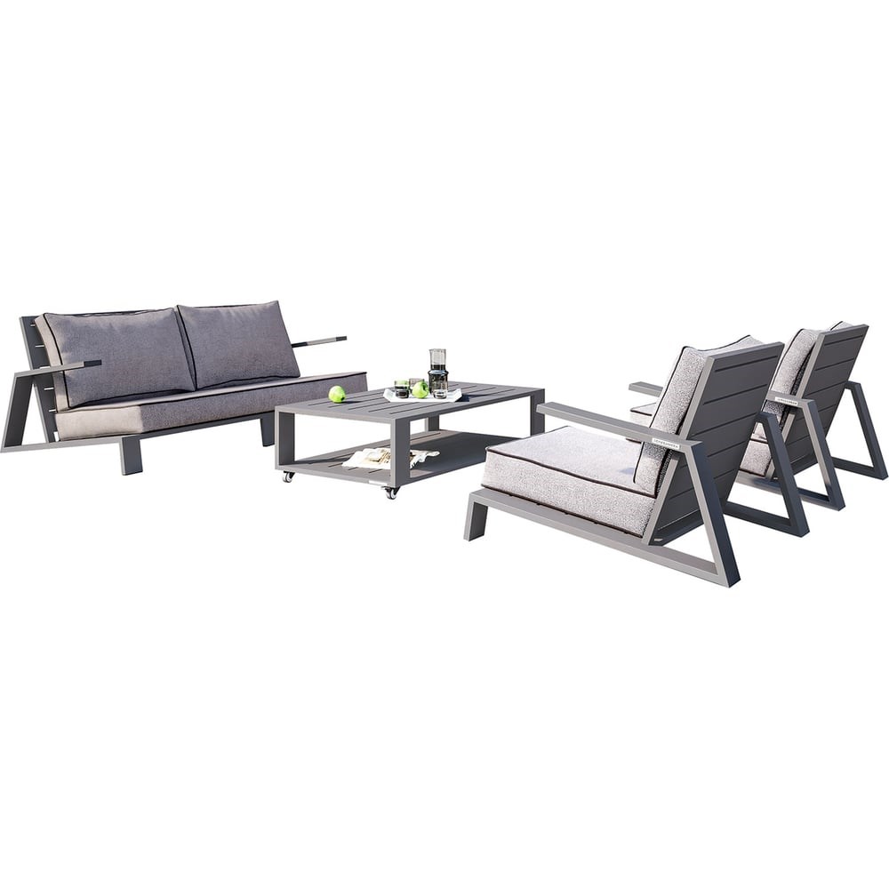Комплект уличной мебели KORFU отличается современным дизайном и долговечностью. В наборе представлено диван, 2 садовых кресла и большой журнальный столик. Характеристики дивана KORFU: размеры: (ширина х глубина х высота) 188 х 94 х 68 см, вес - 48 кг, каркас - алюминиевая профильная труба с полимерным покрытием максимальная нагрузка - 180 кг, пластиковые заглушки на ножках большая подушка 178×61×16 см подушка для спины 89×50×22 см съёмные чехлы подушек - мебельная рогожка наполнитель большой подушки - поролон, подушки для спины - синтепон, упакованы в несъёмный чехол из спанбонда. Характеристики кресла KORFU: размеры: (ширина х глубина х высота) 80 х 94 х 68 см, вес - 25 кг, каркас - алюминиевая профильная труба с полимерным покрытием, максимальная нагрузка - 100 кг, пластиковые заглушки на ножках, большая подушка 69×61×16 см, наполнитель – поролон, подушка для спины 60×50×22 см, наполнитель - синтепон, подушки упакованы в несъёмный чехол из спанбонда, съёмные чехлы подушек - мебельная рогожка. Характеристики журнального стола KORFU: размеры (длина х ширина х высота) 120×65×32 см алюминиевый каркас с полимерным покрытием колесики с пластиковым основанием максимальная нагрузка 100 кг вес 19,6 кг. Алюминиевая мебель отличается долгим сроком службы, подходит для использования на улице и в помещении. Современный комплект подойдет для загородного дома, клуба, ресторана, отеля. Набор мебели доставляем в собранном виде в надежной упаковке.
