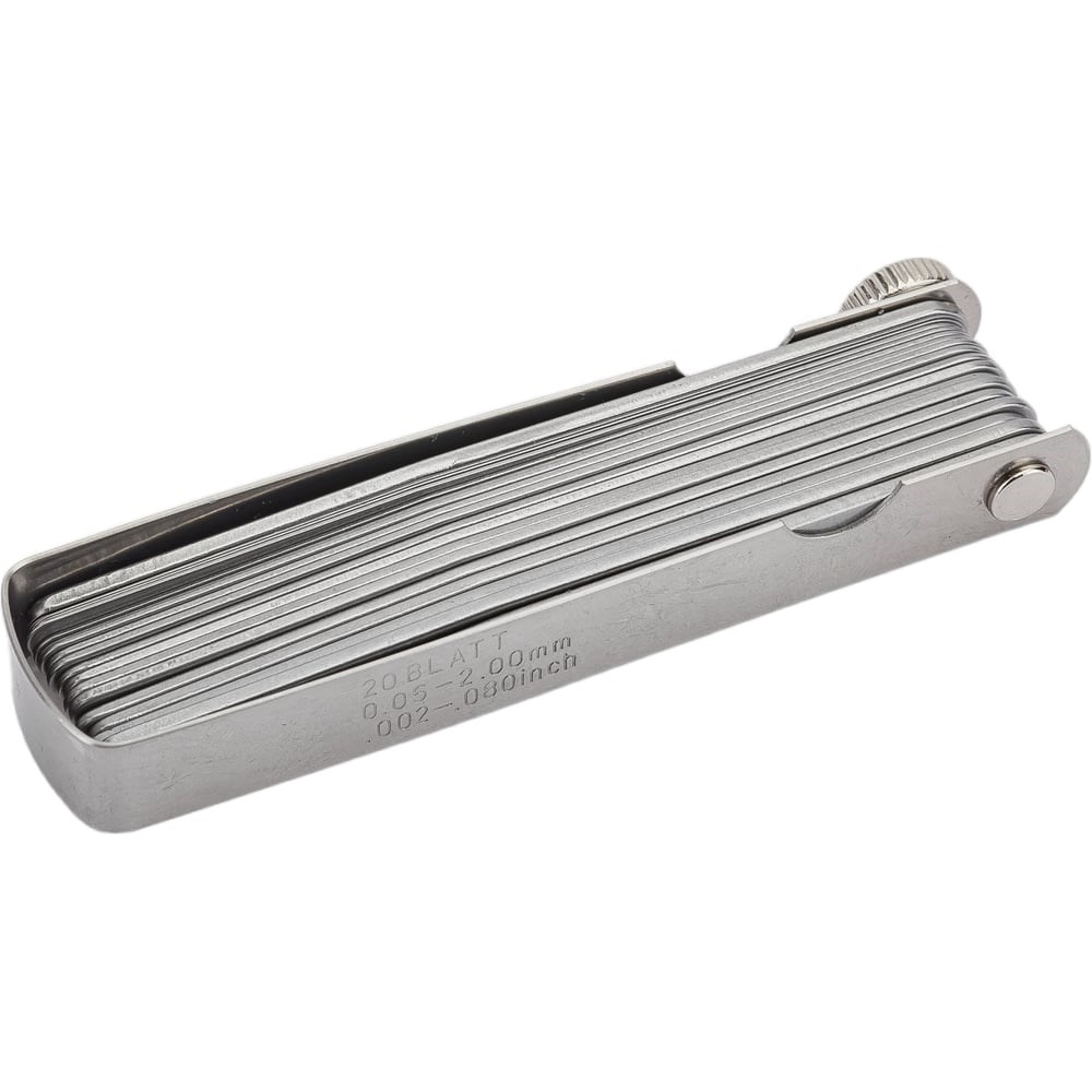 Набор щупов 0,05-2,00мм х 21 шт, нержавеющая сталь 100мм, NORGAU 045158104 являются важным инструментом для обеспечения точности при измерении зазоров контактным методом. Они представляют собой тонкие калиброванные металлические пластины, которые собраны в функциональные наборы.Измерительные щупы с двойной маркировкой (в миллиметрах и дюймах) для удобства считывания показаний, изготовленные из упругой стали с четкой гравировкой размеров.Пластины щупов изготовлены из закаленной стали и имеют коническую геометрию на концах шириной 10 миллиметров. Каждый набор щупов упакован в мягкий пластиковый футляр, а весь инструмент изготовлен из нержавеющей стали для обеспечения долговечности и надежности в использовании.Состав набора в мм: 0,05; 0,1; 0,2; 0,3; 0,4; 0,5; 0,6; 0,7; 0,8; 0,9; 1; 1,1; 1,2; 1,3; 1,4; 1,5; 1,6; 1,7; 1,8; 1,9; 2Длина щупов - 100 мм.
