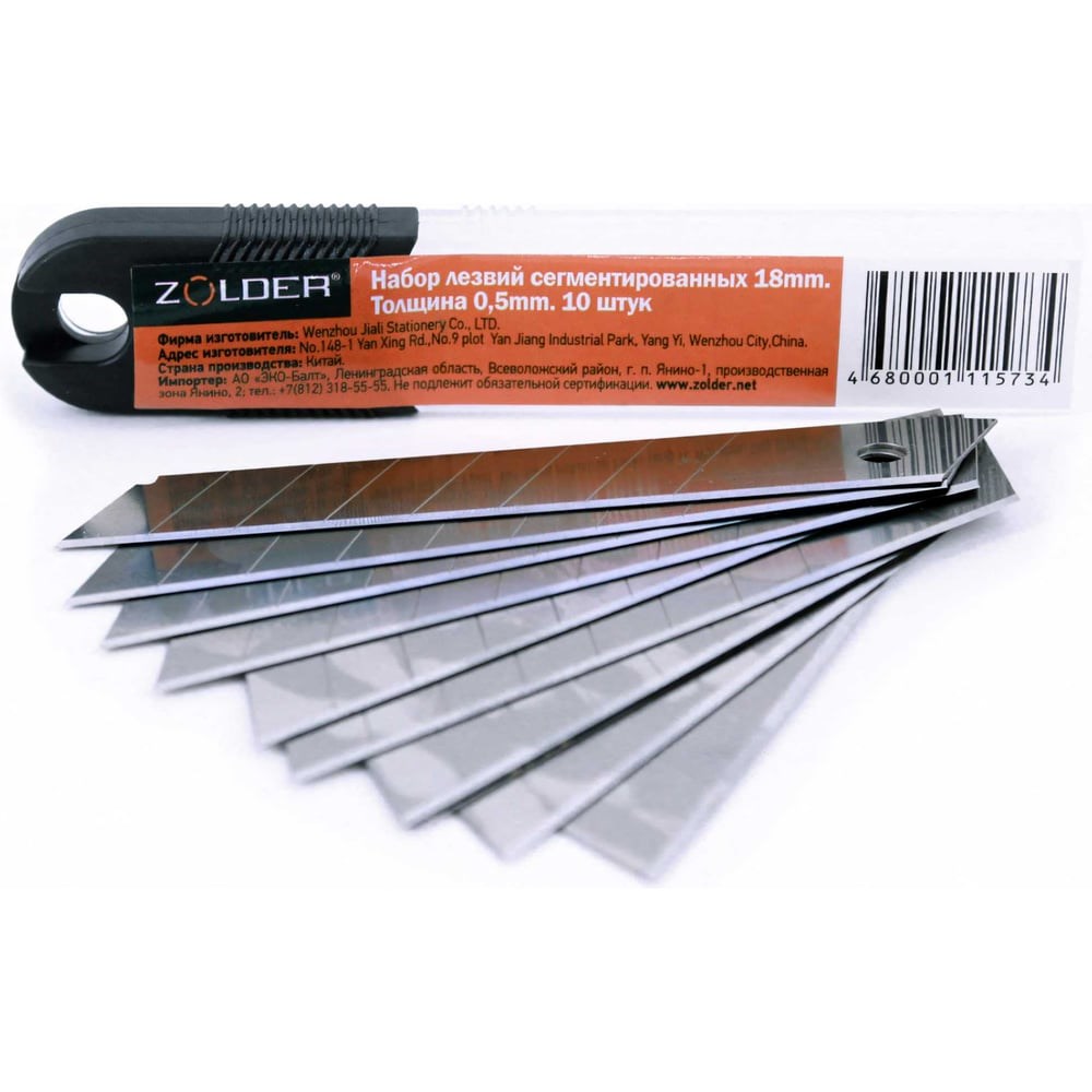 Набор сегментированных лезвий ZOLDER 18 мм, толщина 0,5 мм, 10 шт 4680001115734