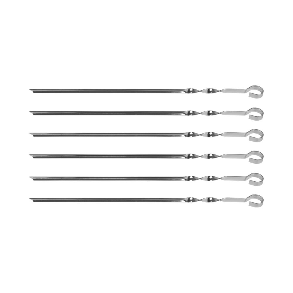 Шампуры Grinda уголок, 450 мм, 6 шт. 427755 имеют V-образный профиль, что позволяет выдерживать вес крупных кусков. Витая рукоятка позволяет удобно и просто переворачивать мясо на мангале.