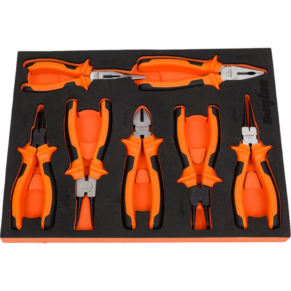 Набор шарнирно-губцевого инструмента Ombra OMT7STE в EVA ложементе 280х375 мм, 7 предметов 56138 представляет собой качественный набор ручного инструмента для строительных, монтажных и слесарных работ. Может использоваться в бытовых и профессиональных целях. Инструмент выполнен из высококачественной хромованадиевой стали, что обеспечивает прочность, твердость и долгий срок службы. Эргономичные рукоятки инструментов комфортны при работе и не скользят в руках оператора. Набор поставляется в удобном ложементе для рационального хранения и транспортировки.
