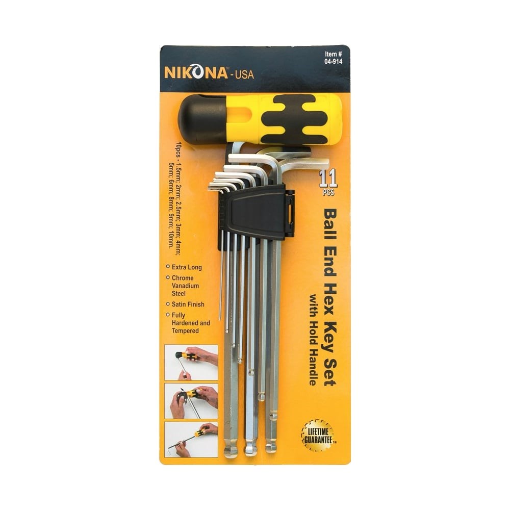 Набор шестигранных ключей NIKONA с Т-образной рукояткой, пластиковый держатель, в блистере, 11шт, 1,5-10мм 04-914 содержит популярный размерный ряд. Все модели изготовлены из высококачественной стали и отличаются особой прочностью. Это обеспечивает стойкость к износу и долгий срок службы. Съемная рукоятка имеет удобную форму для надежного захвата .