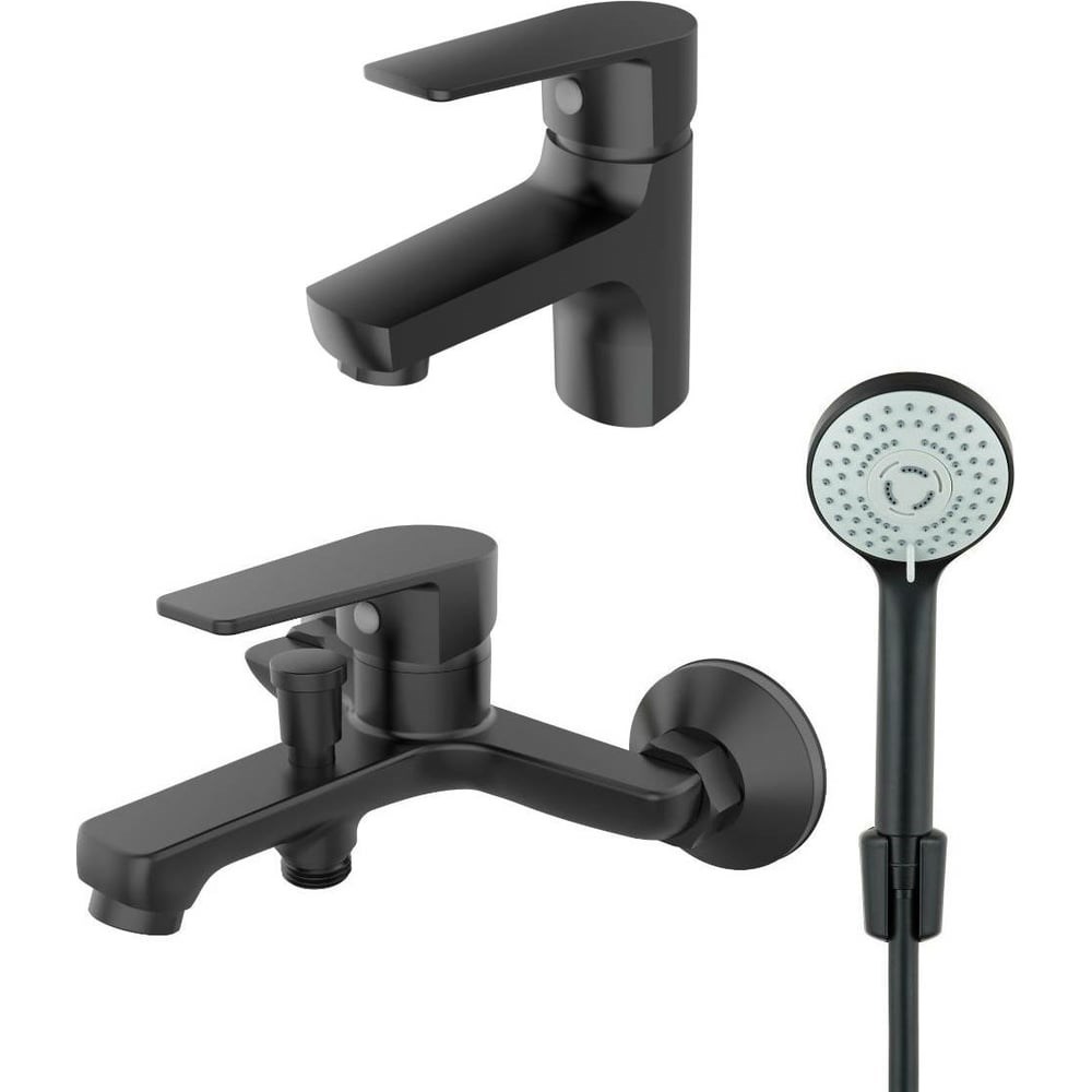 Набор смесителей для ванной комнаты Loop от немецкой компании Orange – отличный выбор для современного интерьера.Латунное изделие устойчиво к коррозии и высоким температурам, а покрытие в цвете матовый черный делает незаметными разводы и высохшие капли. Керамический картридж обеспечивает долговечность изделия, стабильную подачу воды и мощный напор. Излив оснащен пластиковым аэратором, он создает ровную мощную струю и легко очищается от известкового налета.В комплекте душевой набор: душевая лейка d90 мм (3 режима струи, защита от известкового налета RUB CLEAN, с системой AIR IN), шланг PVC 1500 мм с защитой от перекручивания, настенный держатель лейки.