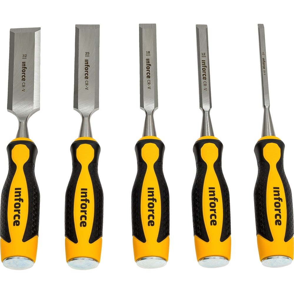 Набор стамесок Inforce 5 шт., 6,12,18,25,32 мм 06-15-04 предназначен для профессионального использования при обработке деревянных заготовок и других изделий из разнообразных мягких материалов. Инструменты состоят из эргономичных двухкомпонентных рукояток с мягкими вставками и противоскользящими свойствами, а также прочными рабочими частями из оцинкованной стали. На кончиках рукояток расположены стальные заглушки, которые позволяют использовать стамески совместно со слесарным молотком для обеспечения большего усилия резания необходимого материала.