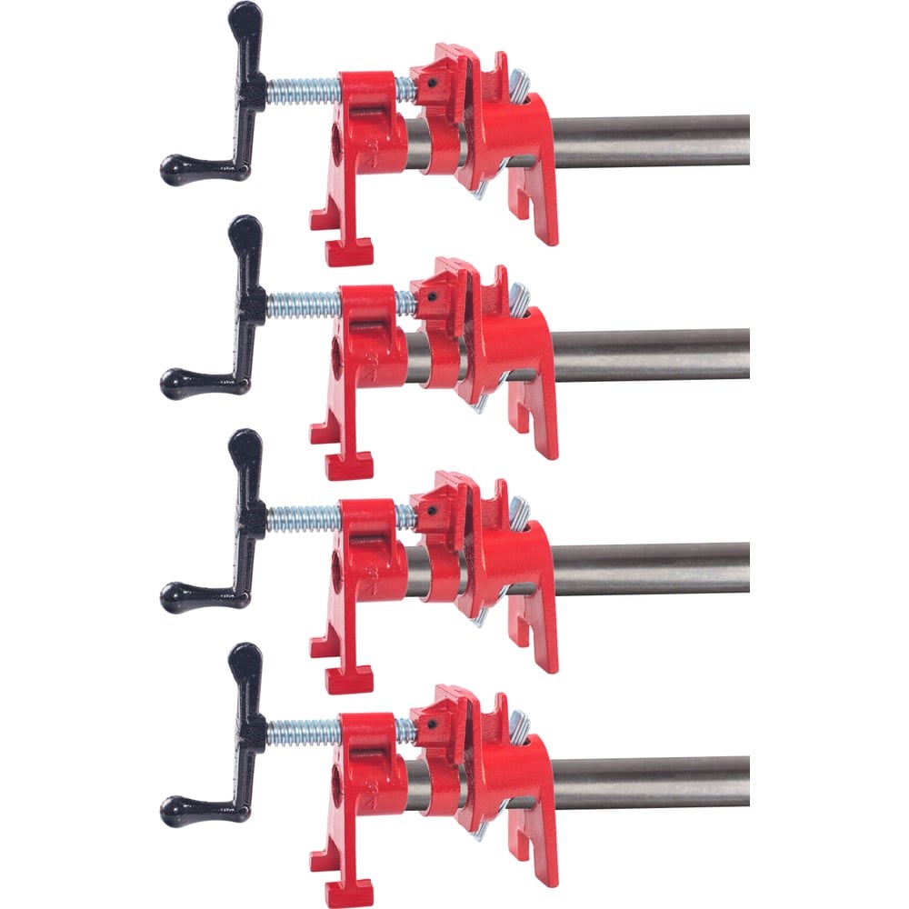 Набор струбцин трубных на ножках 3/4", 4 шт. VIRA Трубная струбцина применяется для зажатия и фиксации различных заготовок и деталей при склеивании и других слесарных работах, особую популярность трубные струбцины приобрели в столярных мастерских для склеивания мебельных щитов и дверных полотен. Размеры деталей для фиксации ограничиваются только длиной трубы, которую вы устанавливаете в струбцину. Зажимное устройство с трапециевидной износостойкой резьбой крепко фиксирует и обеспечивает быструю и надежную затяжку заготовок. Струбцина изготовлена из качественной инструментальной стали. Пружинный механизм на подвижной части позволяет легко фиксировать струбцину перед началом и снимать по окончанию работы. Характеристики:Диаметр трубы (дюйм): 3/4Шаг резьбы: 1.81Материал: стальОпорные площадки: 40х40Внешний диаметр (мм): 26.8Особенности: на ножкахНазначение: для зажатия и фиксации различных заготовок и деталей при склеивании и других слесарных работах, особую популярность трубные струбцины приобрели в столярных мастерских для склеивания мебельных щитов и дверных полотенКоличество в упаковке (шт): 4Внимание! Труба не входит в комплект!