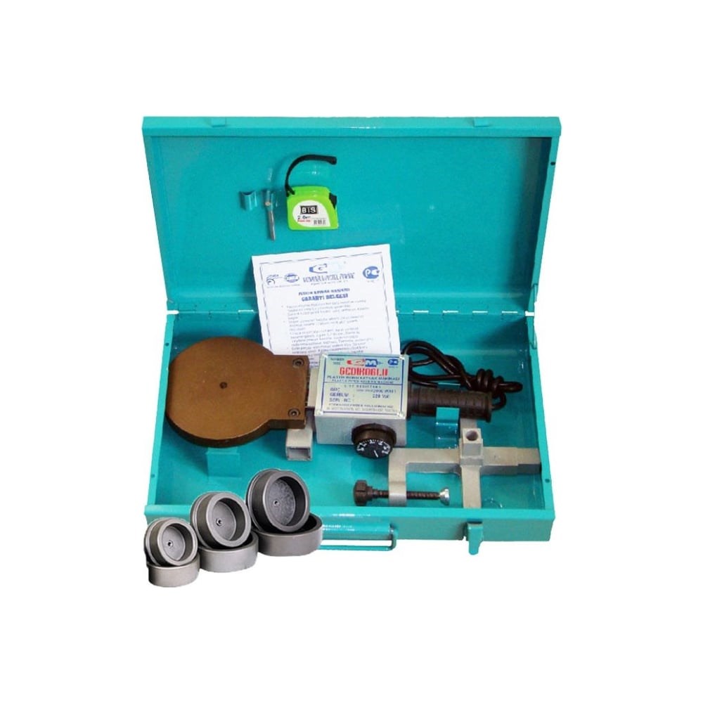 Набор сварочного оборудования GM COBRA 50-75, 2000W GM 0021 предназначен для сварки пластиковых полипропиленовых труб и фитингов PPRC. Аппарат состоит из нагревательного блока из двух независимых электронагревательных элементов из нержавеющей стали с тефлоновым покрытием. При одновременном включении быстро достигается необходимая рабочая температура нагрева, после чего аппарат может быть выключен с помощью тумблера на корпусе. Имеет простое и надежное регулирование температуры, которое осуществляется посредством встроенного термостата. Диапазон регулировки - от 50°С до 300°С.