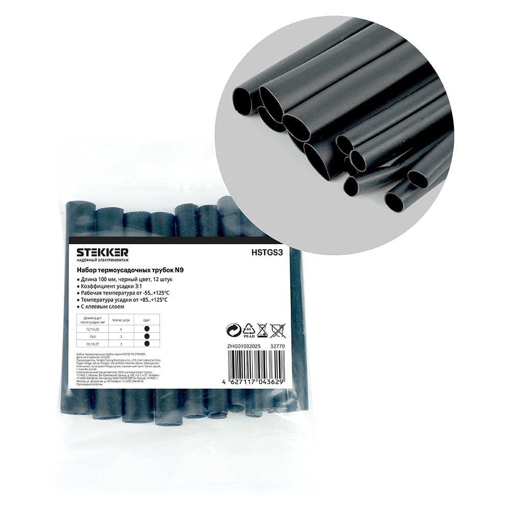 Набор термоусадочных трубок Stekker HSTGS3 N9