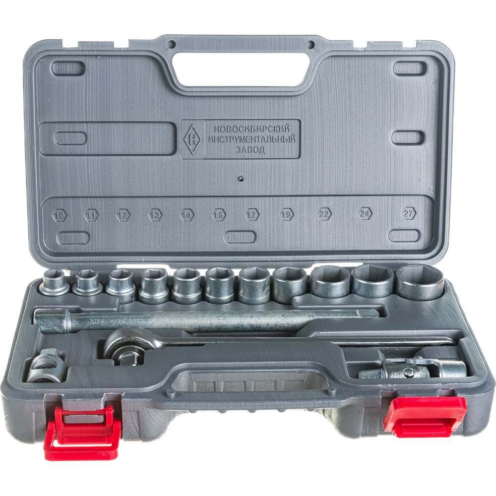 Набор 15шт НИЗ Шоферский инструмент №2Д 2761-20_z01 состоит из торцевых головок, трещотки и дополнительных приспособлений в виде адаптера, удлинителя и шарнира. Инструменты выполнены из качественной стали марки 40Х. Поверхности изделий оцинкованы для защиты от коррозии, рабочие части подвержены закалке. Присоединительный квадрат - 1/2". Для удобства хранения и транспортировки в комплекте предусмотрен закрывающийся кейс с ручкой.