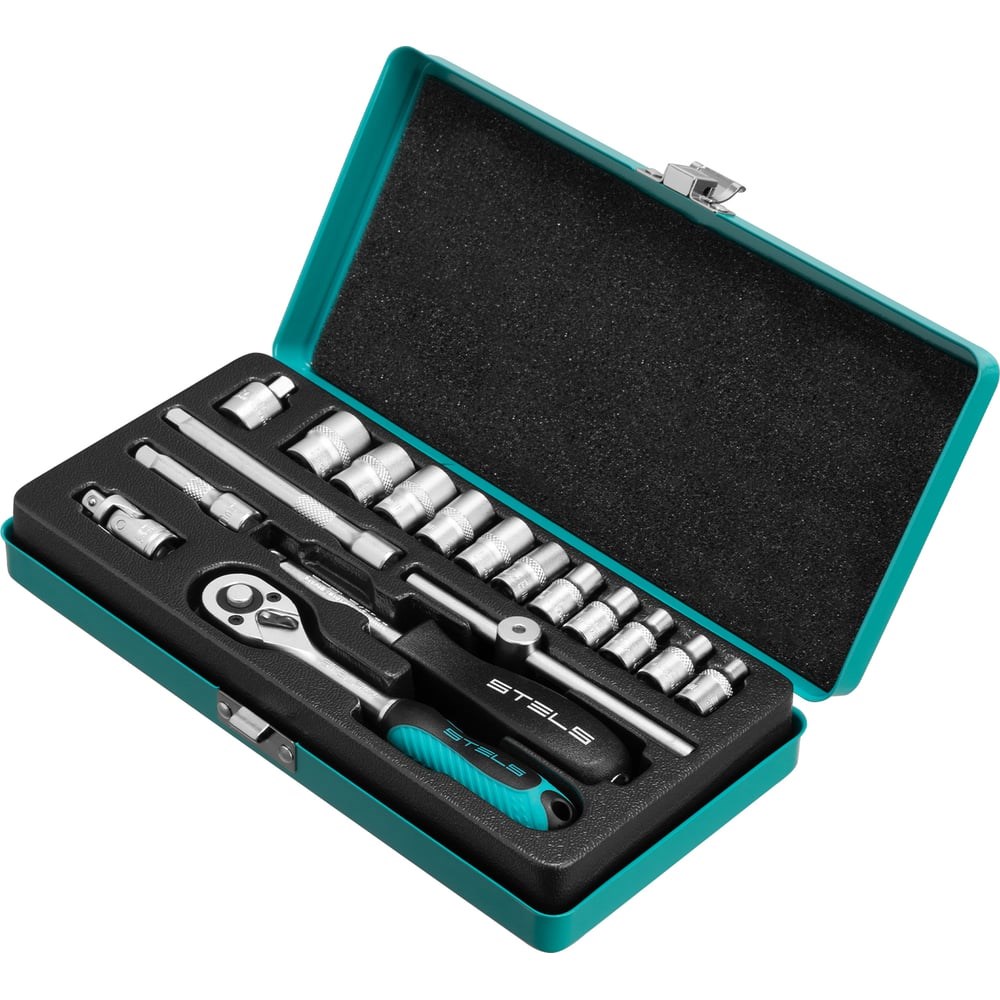 Набор торцевых головок с трещоткой, 1/4", 18 предм, STELS 13573 изготовлен из хромованадиевой стали. Благодаря этому инструмент обладает прочностью и имеет долгий срок службы. Специальный металлический кейс устойчив к повреждениям при падении. Это обеспечивает удобное хранение и безопасную транспортировку данного набора.