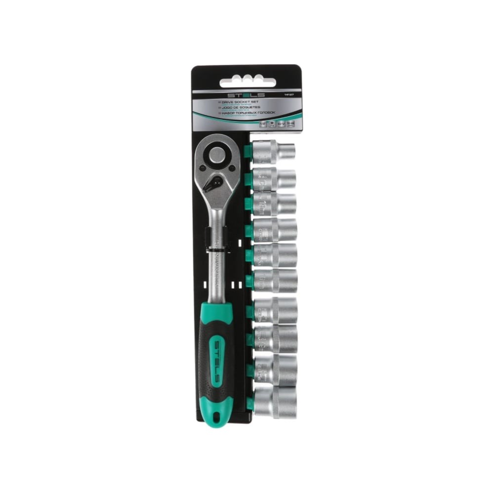 Набор торцевых головок STELS 1/2 11 предметов 14127 используется при монтаже и демонтаже резьбовых соединений с квадратом 1/2". Все рабочие части набора выполнены из прочной хромованадиевой стали. Ключ с матовым хромированием покрытия оснащен трещоткой с 72 зубьями. Переключатель реверса фиксируется в двух положениях. Комплект хранится на пластиковом держателе. Подвесная карта (размеры) 325х100х15 мм.