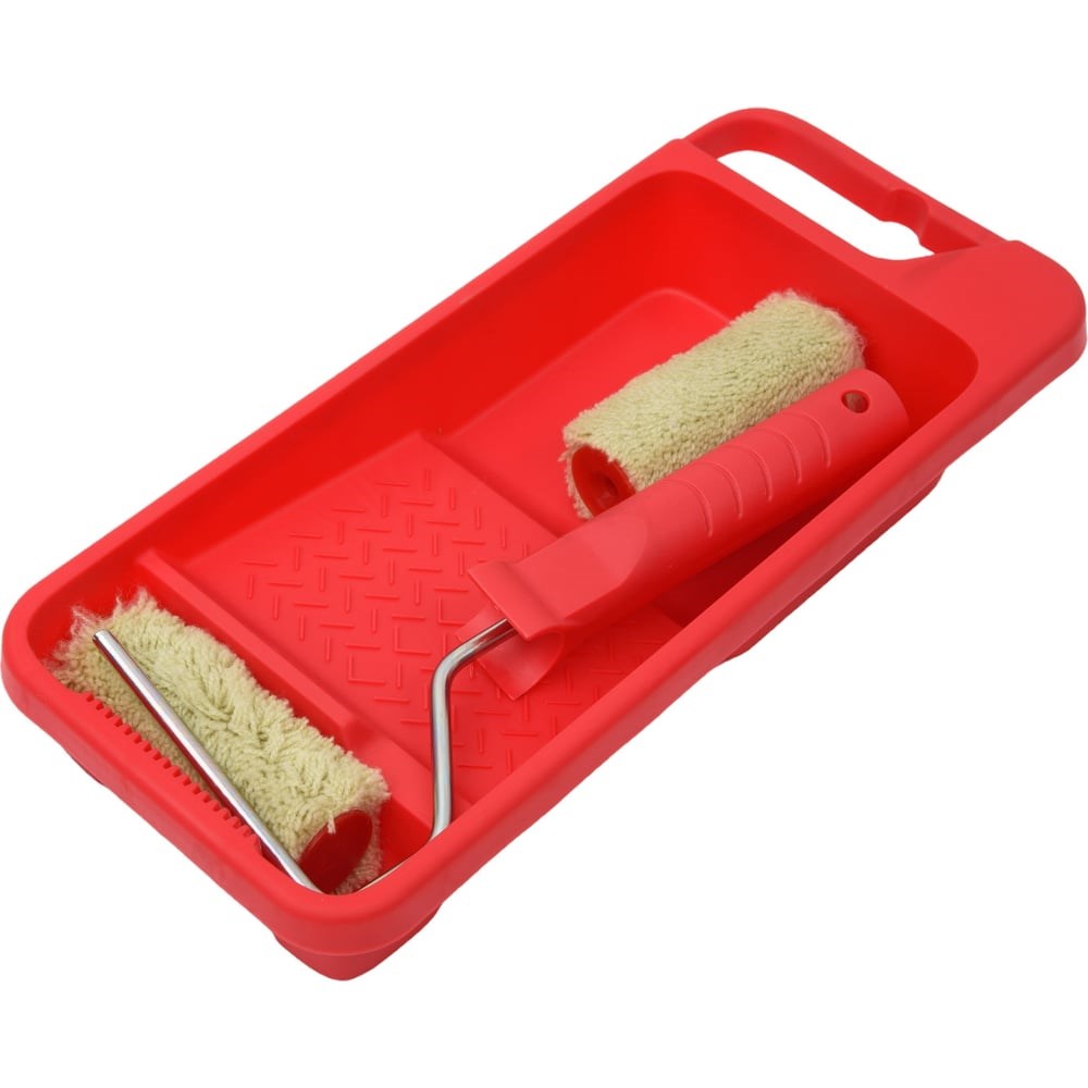 Малярный набор VIRTUS ванночка малярная, ручка, 2 миди-валика, полиакрил, 100 мм 002777004 применяется для нанесения лаков, красок, эмалей, а также иных лакокрасочных материалов на шероховатые поверхности во время проведения внутренних и наружных отделочных работ. Наиболее эффективно используется для работы с лакокрасочными материалами, которые растворяются органическими растворителями. Ванночка изготовлена из высококачественного пластика. Рабочая часть валика сделана из полиакрила на тканой основе, волокна которого не выпадают и не спутываются, восстанавливают свою форму после прокатки, а также хорошо распределяют лакокрасочный материал без разбрызгивания и образования подтеков. Шубка валика надежно крепится к оснастке с использованием метода термоплавления. Легко очищается, имеет повышенную износостойкость и производительность.