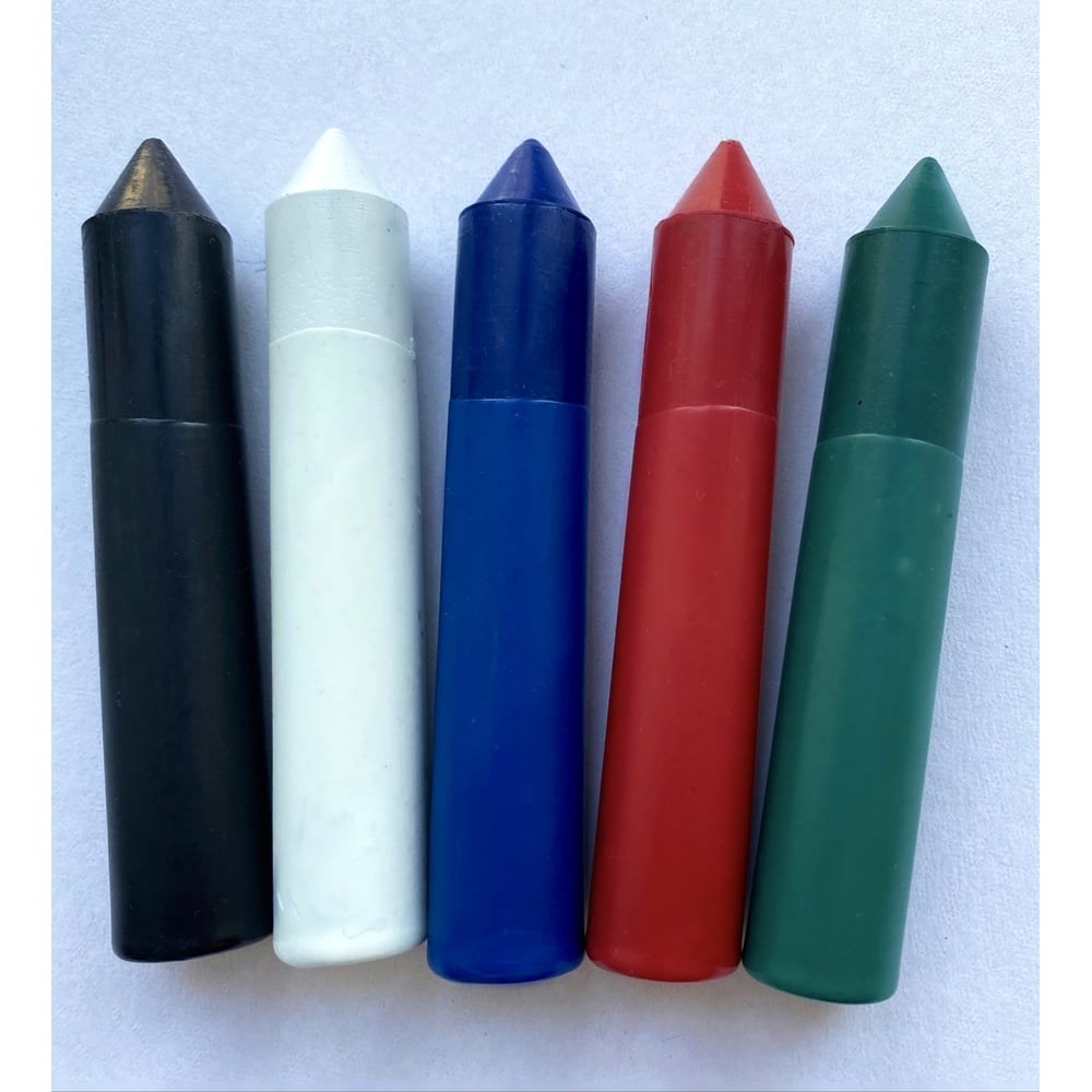 Набор мелков-карандашей восковых разметочных, 5 шт. в упаковке, белый/черный/синий/красный/зеленый, 19173861 предназначен для маркировки на древесине, металле, стекле, бумаге, коже, резине(шины), камне и т.д.Восковые мелки имеют уникальную мягкую формулу, что позволяет использовать их на неровных поверхностях. Оставляет четкую, яркую линию, устойчив к истиранию.Сохраняет эффективность в любых климатических условиях. Маркировка устойчива к влаге и УФ в условиях улицы и помещений. Карандаш способен наносить маркировку на сырой древесине.Одно из главных преимуществ мелков является их размер - 110х19 мм и вес - 35г., что позволяет использовать их в течение длительного периода. Еще одно преимущество - это декоративное покрытие карандаша. Благодаря, которому мелок не пачкает руки и можно пользоваться им без перчаток.Применение: лесная промышленность, каменно-строительные работы, сборка автомобилей, стекольные заводы, обувные фабрики и т.д.