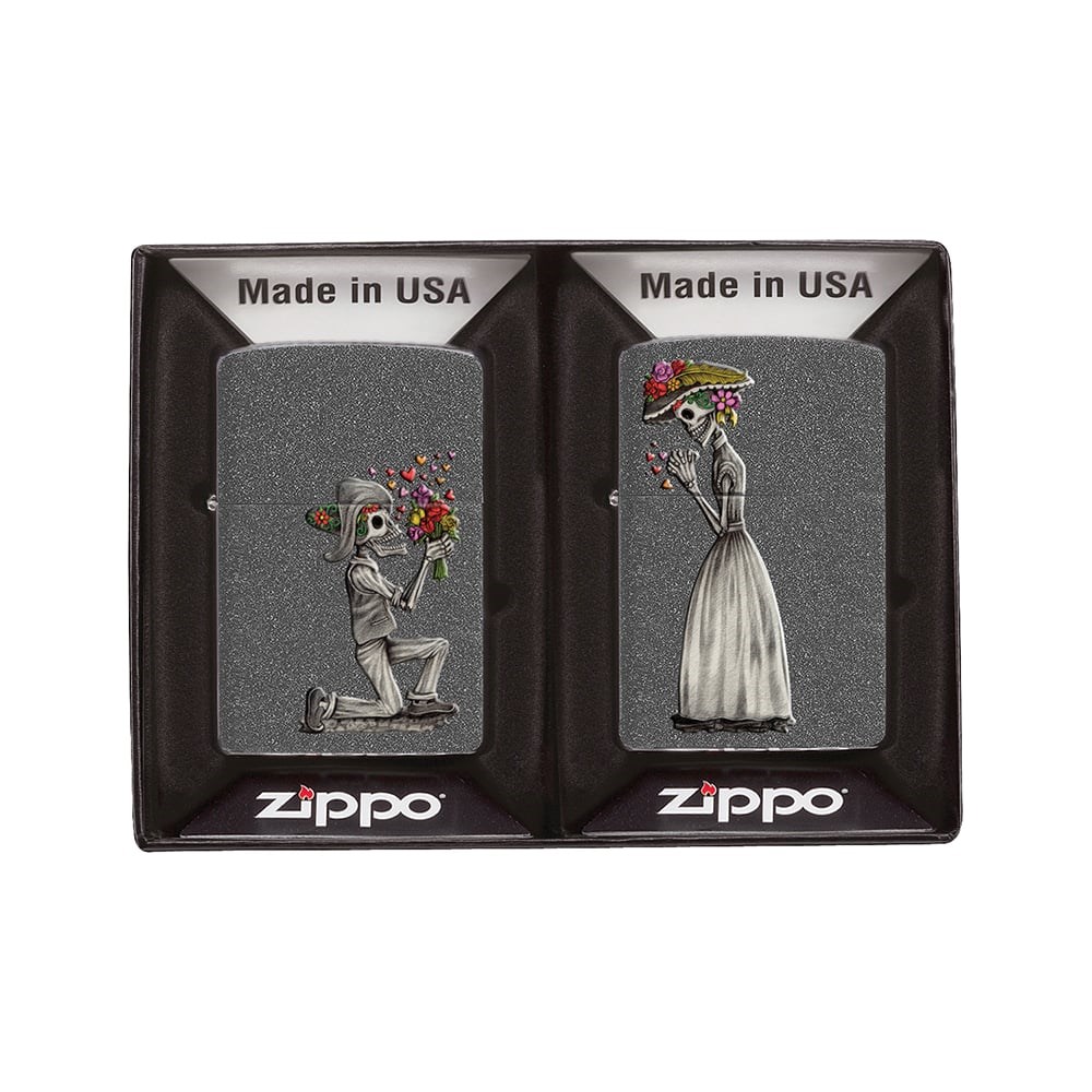Набор из двух зажигалок Zippo Влюбленные зомби, с покрытием Iron Stone, 28987 станет отличным приобретением в личную коллекцию. Поставляется в коробке. Корпус из латуни и стали отличается прочностью и долговечностью. Покрытие защищает от царапин. Модели имеют хорошую ветроустойчивость, поэтому работают даже в плохую погоду. Заправлять зажигалки следует только первоклассным топливом Zippo. Предусмотрена пожизненная гарантия.