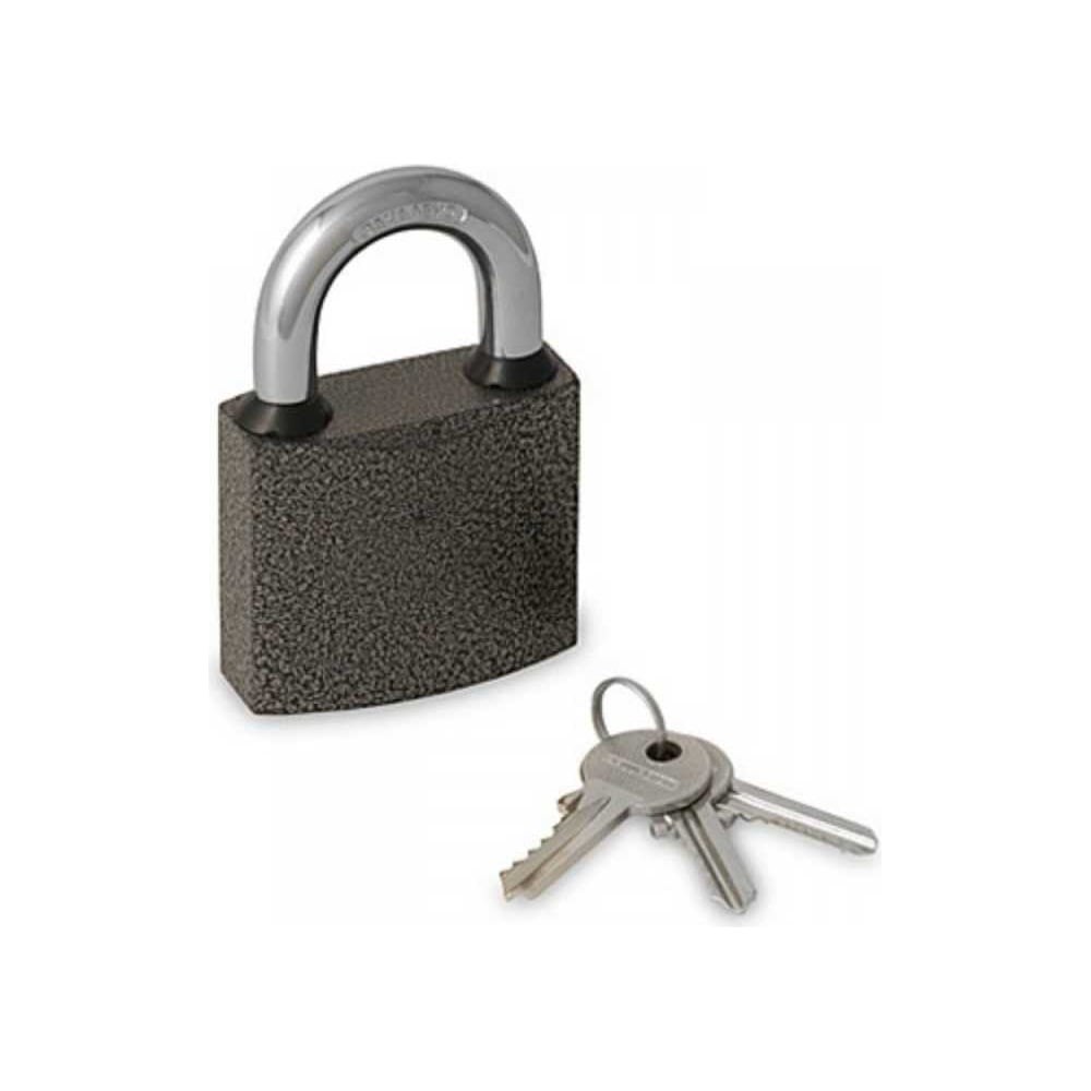 Всепогодная эксплуатация, английский ключ, 1 фиксатор, чугунный корпус с антикоррозийным порошковым покрытием. Дуга из закаленной хромированной стали с автоматическим запиранием. На основании дуги присутствуют резиновые манжеты, препятствующие проникновению воды в корпус замка. Латунный цилиндровый механизм.