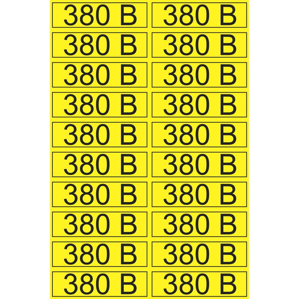 Наклейка знак электробезопасности 380В REXANT 15x50 мм 100 шт 56-0008-1 - это информационный знак, который размещается для информирования о напряжении в электрической сети, около розеток и выключателей. Такие наклейки предназначены для предупреждения и информирования окружающих, а также для организации мест работы электромонтажных бригад, несут дополнительную информационную нагрузку. Знак хорошо виден и сохраняет яркость цветов долгое время даже при постоянном использовании. Имеет хорошую устойчивость к смазыванию, стойкость к прямым солнечным лучам, перепадам температуры, мелким механическим воздействиям. Выполнен из прочного, износостойкого материала, легко клеится, крепко держится и не оставляет следов после снятия. Комплект набора: 100 наклеек размером 15 (вертикаль) х 50 (горизонталь) мм (по 20 наклеек на листе размером 10х15см).