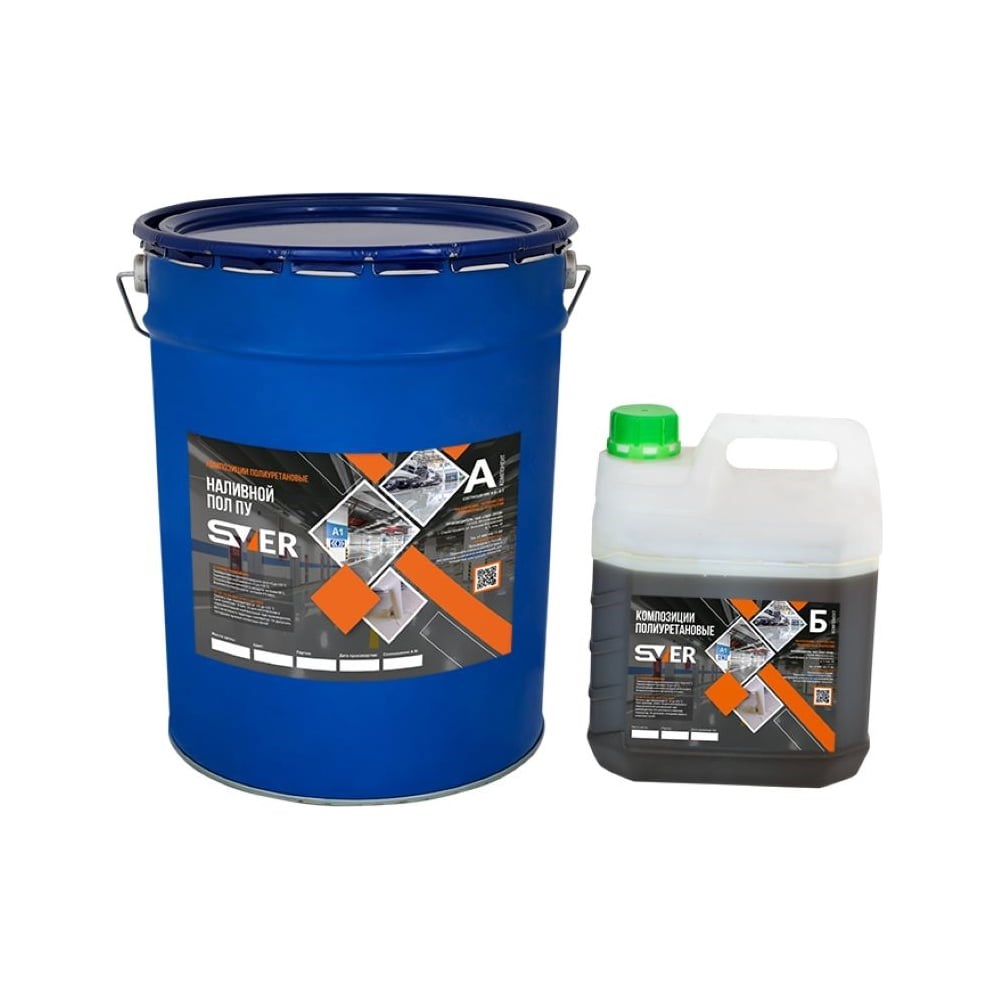 Наливной пол SVER ПУ темно-серый, 24 кг (20+4 кг) 1000157 - двухкомпонентный окрашенный полиуретановый состав для выравнивающих и финишных слоев полимерных оснований, а также используют в качестве самостоятельного покрытия. Область применения: Для создания гладкого колерованного наливного финишного покрытия, стойкого к вибрациям и подвижкам основания Для создания нескользящего колерованного покрытия, в зонах с возможным трещинообразованием Для заделки швов в бетонных конструкциях Состав наносят на предварительно загрунтованную поверхность. Пропорции смешения:5 части компонента А к 1 части компонента Б. Для приготовления состава необходимо: Тщательно перемешать емкость с компонентом "А" Полностью перелить компонент "Б" в емкость с компонентом "А" и перемешать в течение 2-3 мин., обращая особое внимание на перемешивание материала у дна и стенок Способ применения: После перемешивания наливной пол ПУ как можно быстрее выливается на загрунтованное основание и распределяется с помощью шпателя с металлическими зубчатыми вставками. Высоту зуба следует выбирать исходя из планируемого расхода материала (толщины слоя). Через 10-15 минут после распределения комплекта материала необходимо обработать уложенный слой игольчатым валиком для удаления пузырьков воздуха и облегчения процесса нивелирования слоя.