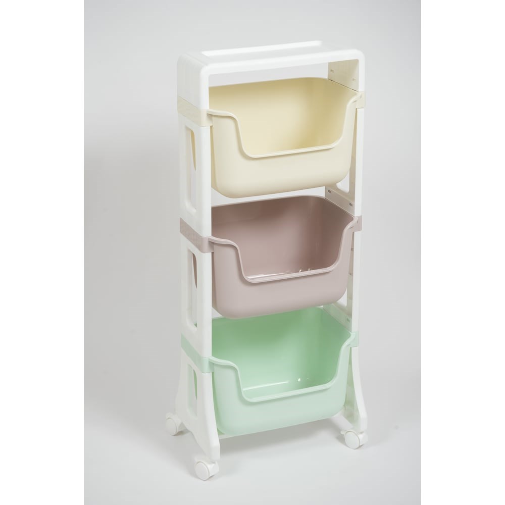 Этажерка Violet Junior напольная, 3-х ярусная, на колесах, микс 771300 – универсальное решение для компактного хранения в доме, офисе или на даче. Стойка и ящики этажерки производятся без острых углов и соединений. Мягкие округлые формы делают органайзер идеальным для использования в детской комнате. Изделие удобно как для хранения игрушек, книг и канцелярии в детской, так и для хранения кухонной утвари, овощей и фруктов на кухне. Выполнена из пластика, не содержащего бисфенол А. Абсолютно безопасна для здоровья, поэтому может использоваться в любом уголке Вашего дома. Преимущество этажерки в ее легкости, устойчивости к влаге и простоте в уходе. Удобная система хранения – полки вместят большой объем предметов. Сверху этажерки имеется дополнительная многофункциональная полка. Благодаря колесам стойку можно перемещать без особых усилий, а тормоза на колесиках надежно фиксируют положение этажерки. Изделие поставляется в разобранном виде в индивидуальной коробке.