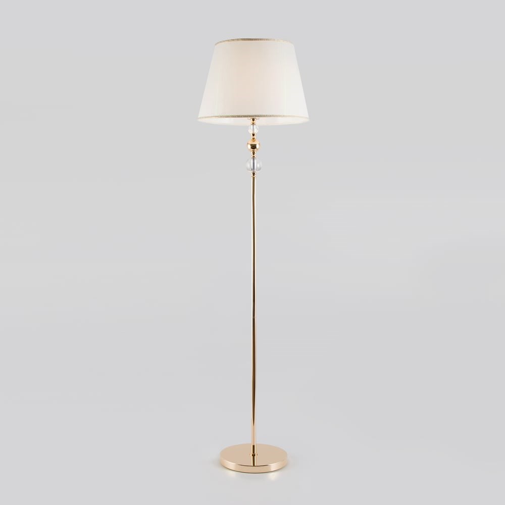 Напольный светильник с тканевым абажуром 01072/1 золото - это стильный элемент светового дизайна в современных и классических интерьерах. Эффектный торшер со сменной лампой E27 поможет создать качественное дополнительное освещение на площади 5 м² и станет изящным украшением вашей спальни или гостиной.Благодаря тканевому абажуру в белом цвете напольный светильник создает мягкое равномерное свечение, подходящее для комфортного чтения книг в вечернее время. Прочный металлический корпус светильника устойчив к механическим воздействиям, а защитное покрытие обеспечивает надежную электроизоляцию и презентабельный внешний вид.