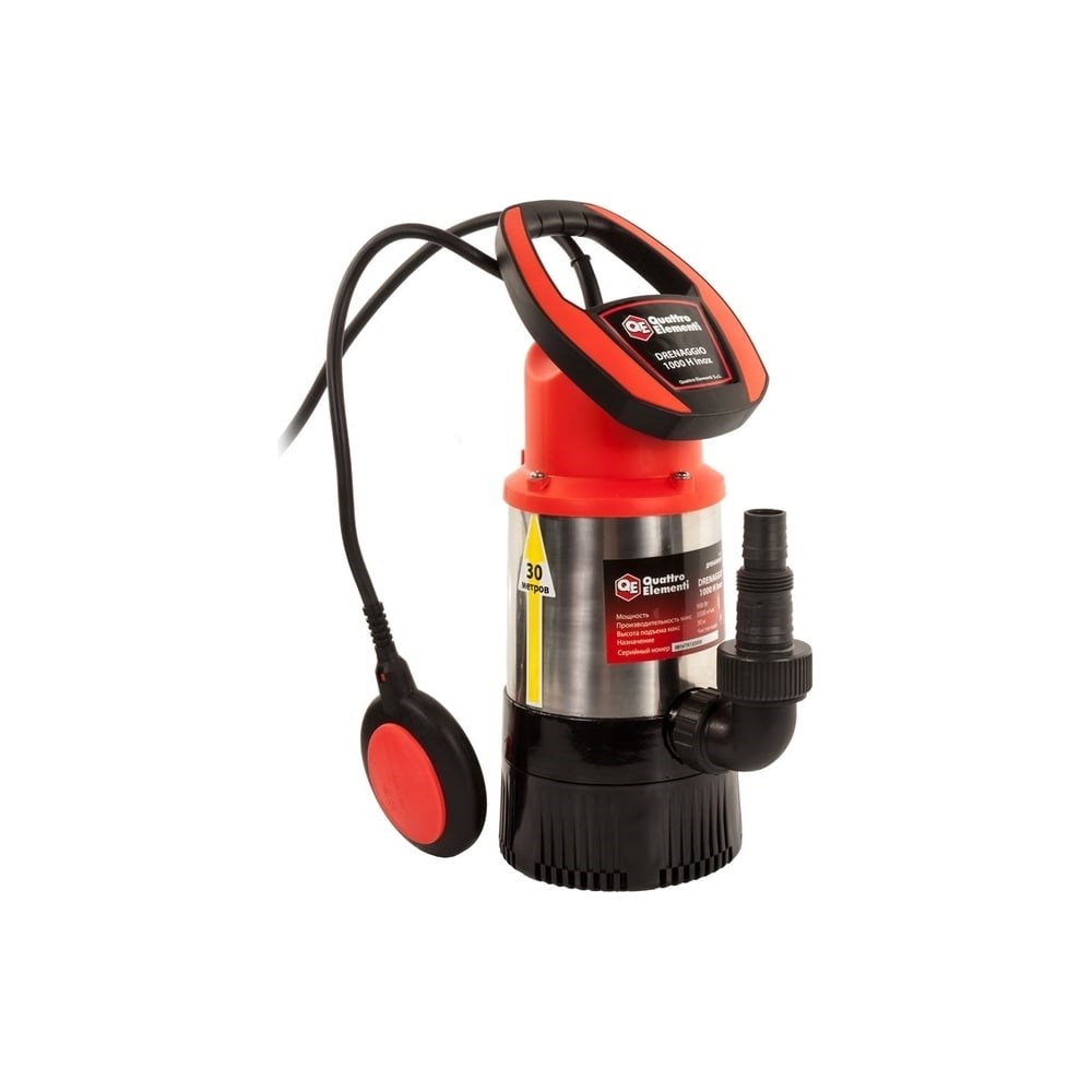 Дренажный напорный насос QUATTRO ELEMENTI Drenaggio 1000 H Inox 771-756 предназначен для откачки чистой воды. Оборудован поплавком-выключателем для защиты от перегрева и поломки электродвигателя. Данная модель отличается высокой напорной способностью. Может использоваться для систем водоснабжения. Корпус выполнен из износостойких материалов - нержавеющая сталь и ударопрочный пластик. Это гарантирует длительный срок эксплуатации агрегата.