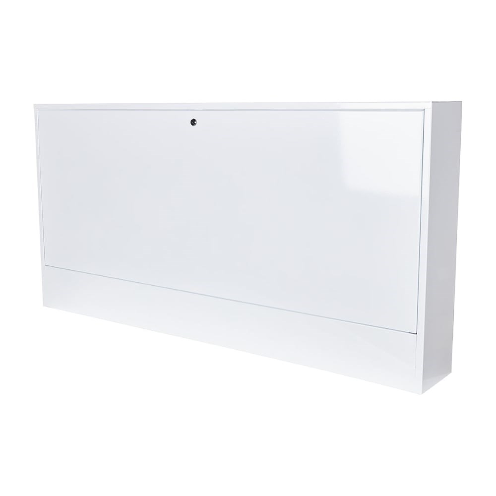 Шкаф предназначен для размещения в нем распределительных коллекторов радиаторной или напольной разводки, а также водопровода. Изготовлен из листовой стали окрашен порошковой эмалью белого цвета (RAL9016) с предварительным нанесением фосфатной пленки. Внутри шкафов установлены подвижные универсальные профильные крепежные рейки, позволяющие располагать оборудование в любом месте по высоте и ширине шкафа. В боковых стенках корпуса выполнена перфорация, сегменты которой удаляются в любом месте, удобном для подсоединения трубопроводов.