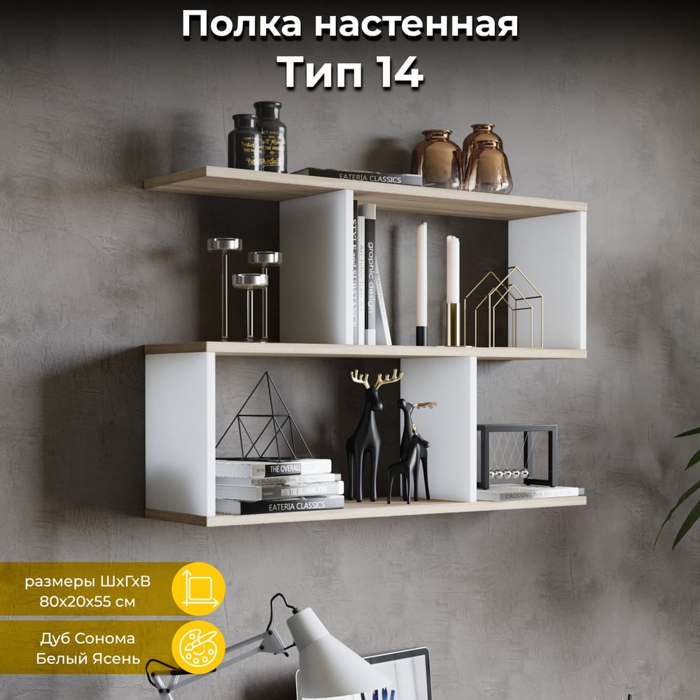 Настенная полка ТриЯ тип 14, Дуб Сонома/Белый Ясень 179525