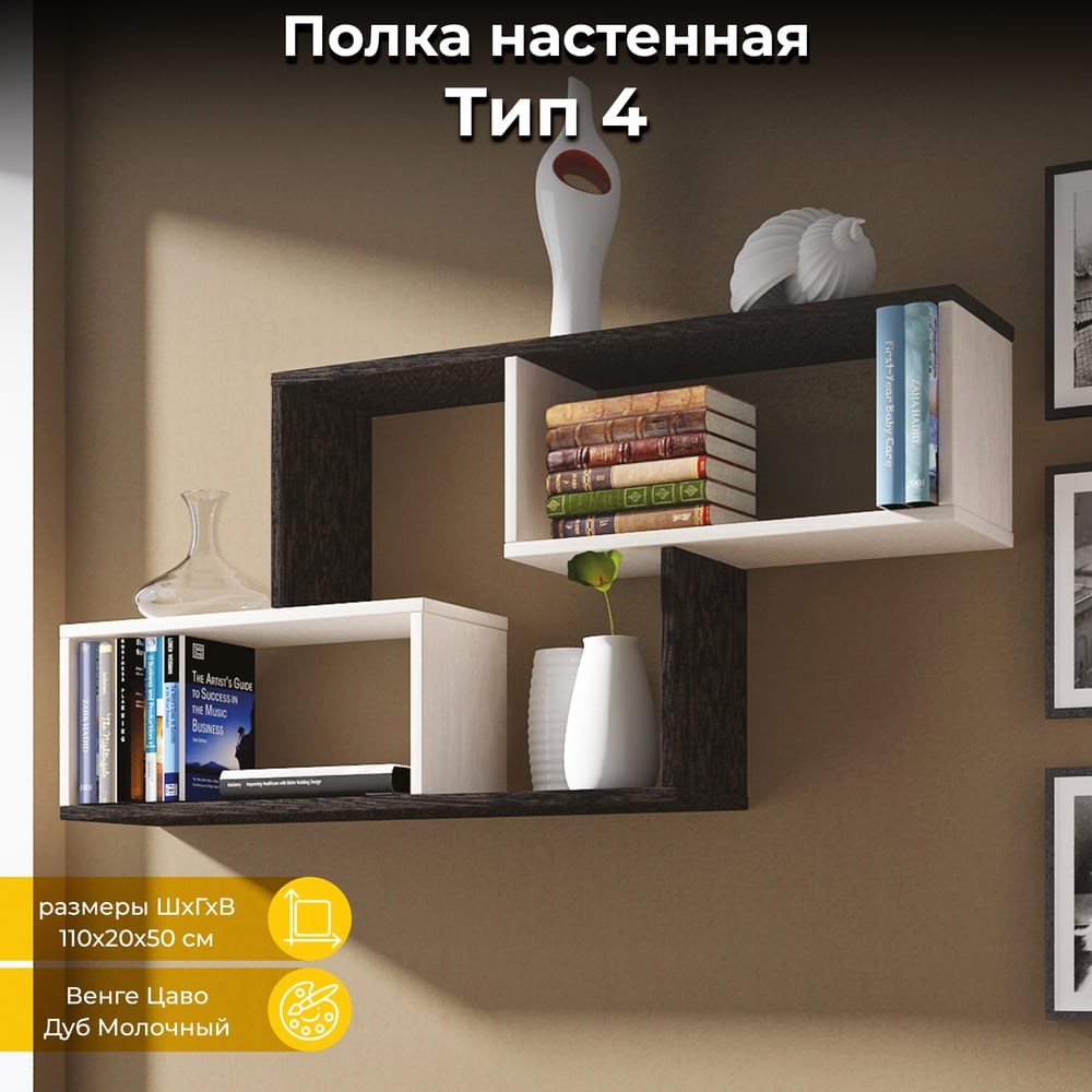 Геометричная универсальная полка представленная в современном дизайне и расцветках, предназначенная для книг и других ассексессуаров, которая подойдет в цвета любого интерьера. Настенная полка тип 4 подойдет для любых помещений: малогабаритных квартир и больших апартаментов. Полка универсальная и ее можно использовать на кухне для специй или посуды, в гостиной и спальне в качестве книжной полки, в кабинете для хранения документов или школьных принадлежностей. Полка изготовлена из прочного ЛДСП высокого качества. В высоту полка 20-24 см, в ширину 50 см. Полочка поможет вам организовать рабочее пространство и позволит хранить нужные вещи в быстром доступе. Все отверстия данной модели мебели сделаны на производстве, поставляется в разобранном виде, вся фурнитура и инструкция идет в комплекте. Книжная полка имеет быструю и легкую сборку.Прежде чем приступить к сборке, необходимо убедиться в качестве, количестве и соответствии всех деталей. Если таковые выявлены, необходимо незамедлительно связаться с площадкой и продавцом, для разрешения вопроса, не приступая к сборке. Товар после сборки возврату и обмену не подлежит
