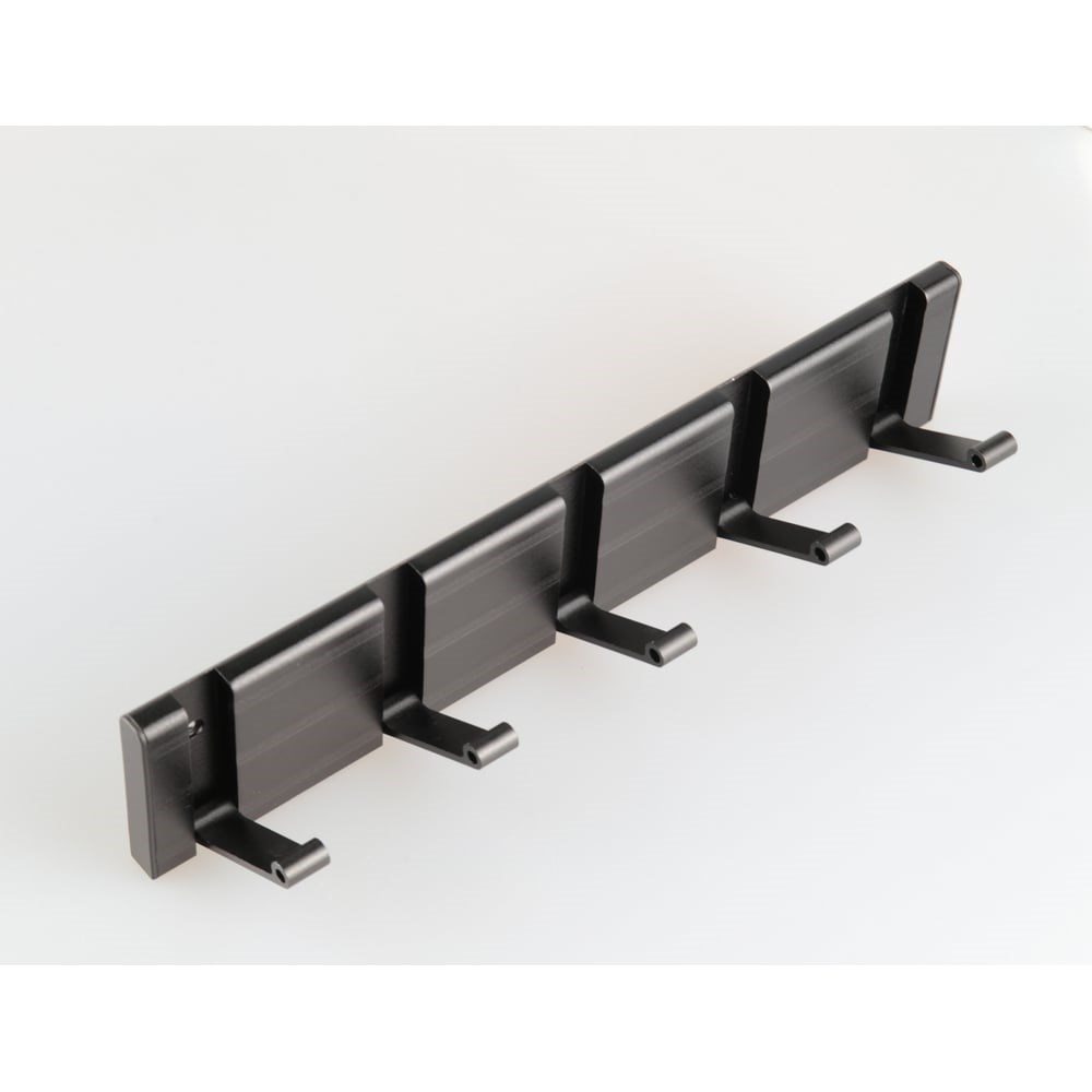 Настенная вешалка Brante flip 5 крючков, черный/черный 112118 предназначена для хранения верхней одежды, сумок, зонтов и прочих аксессуаров всей семьи. Выполнена из алюминия, устойчивого к высоким нагрузкам и влажности, что позволяет использовать изделие в ванных комнатах. Конструкция снабжена 5 выдвижными крючками, поэтому вешалка отлично подходит для небольших помещений. Прочные крючки выдерживают нагрузку до 5 кг. Имеет гладкий профиль и скрытую крепежную панель, благодаря которой без проблем монтируется на любой стене. Современный дизайн вешалки украсит любой интерьер.