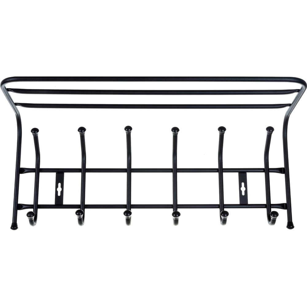 Настенная вешалка с полкой Nika 6 крючков, черный ВП6 прекрасно дополнит интерьер прихожей. Изготовлена из прочного материала, прослужит не один год. Предусмотрена специальная полка для размещения головных уборов. Благодаря пластмассовым наконечникам вещи не царапаются.