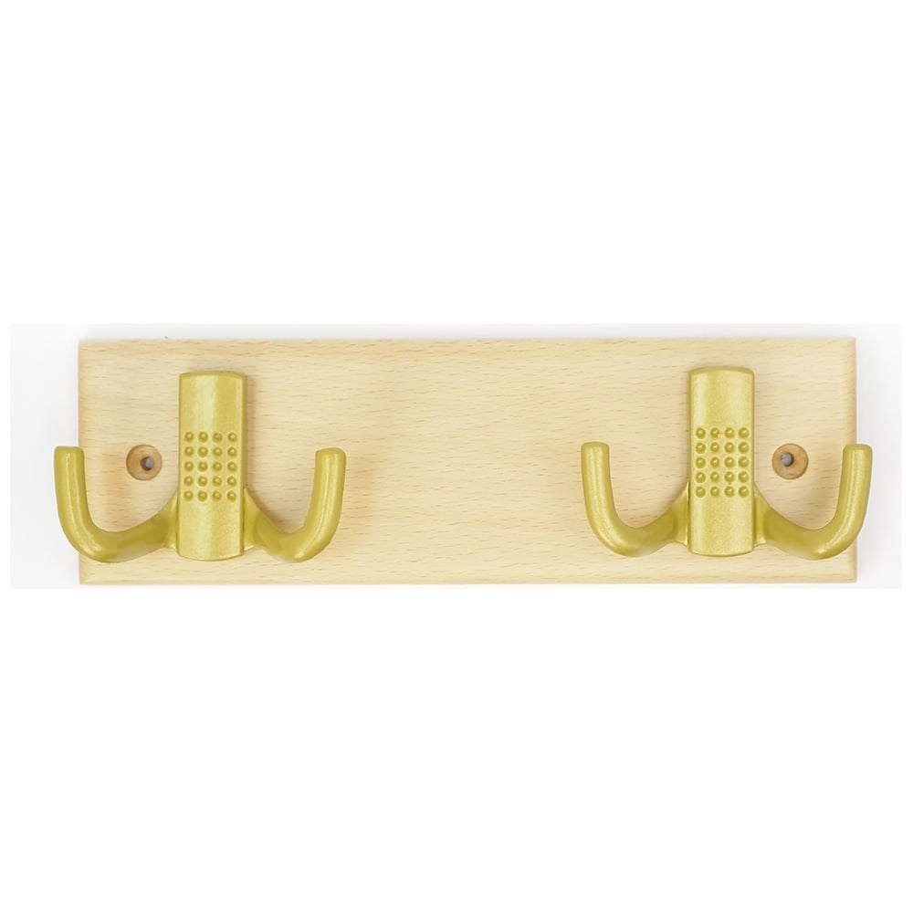 Настенная вешалка на деревянной планке с двойным крючком 2/2 бук-золотой мет. Трибатрон Комфорт 87991 подбирается по цвету и формату под дизайн помещения. Поставляется с крючками. Профиль крюка рассчитан на нагрузку в несколько килограммов - оптимально для зимней одежды. Каждый крючок крепится на планку двумя саморезами для прочности.