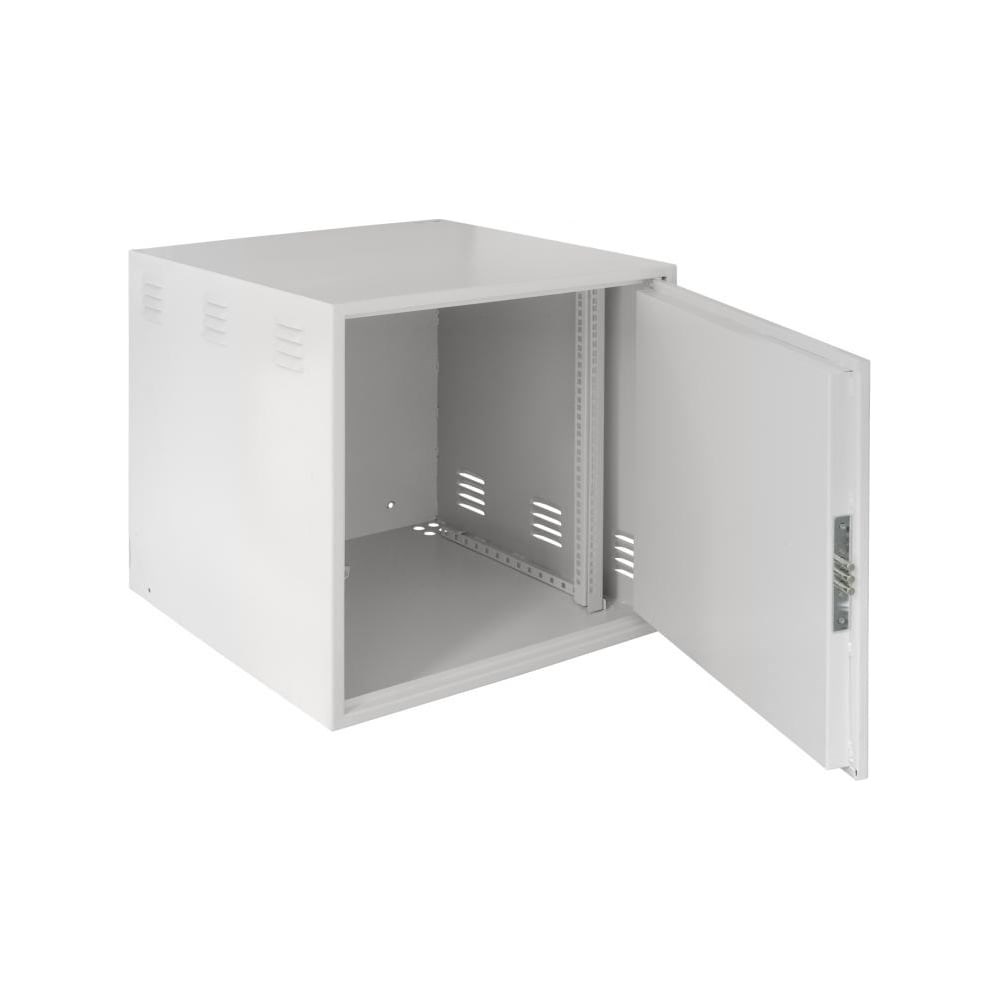 Настенный антивандальный шкаф сейфового типа 12U серый NETLAN EC-WS-126060-GY служит для установки в подъездах, на чердаках, в технических и других помещениях различного типа и назначения, обеспечивающих нормальный температурно-влажностный режим, но требующих защиты установленного оборудования от несанкционированного доступа или хищения. Данная модель оснащена дверцей сейфового типа из двухслойной листовой стали, дверь утоплена внутрь на 2 мм. Внутреннее пространство позволяет удобно разместить 19" оборудование. Такое качество обеспечивается путем регулировки глубины специальными направляющими. На боковых стенках изделия расположены вентиляционные жалюзи, для подвода холодного и отвода горячего воздуха от установленного активного оборудования - для этого жалюзи располагаются на разной высоте боковых стенок. Кабельные вводы удобно расположены на днище и в крыше шкафа в его задних углах.