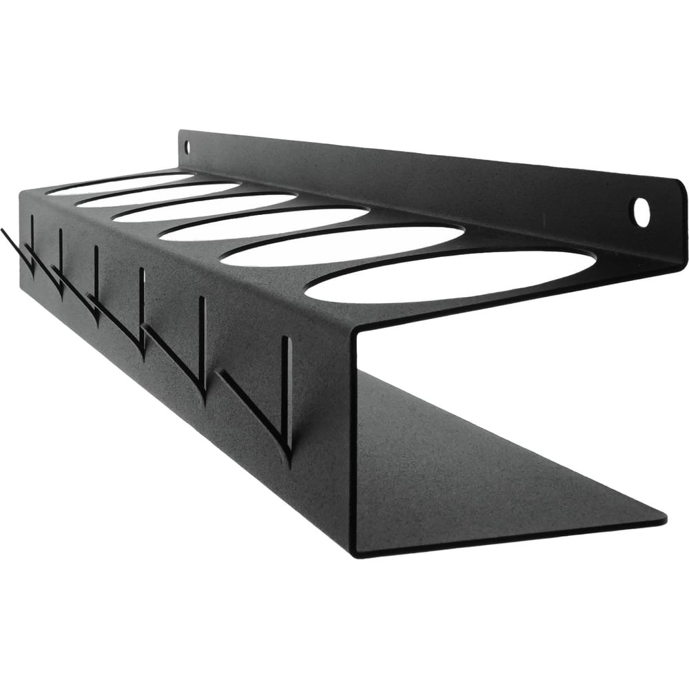 Настенный держатель-органайзер для баллончиков EMBODIMENT с крючками, черный EMB-WOP-L-B помогает правильно организовать пространство, и оптимизировать использование каждого сантиметра свободной площади. Кронштейн позволит легко и удобно расположить шесть баллончиков с краской, смазкой и другими техническими аэрозолей, диаметром до 72 мм и станет идеальным местом их хранения в гараже, на балконе, складе и мастерской, кладовке и в других местах. Обеспечивает порядок на рабочем месте и быстрый доступ к инструменту, который легко можно достать для работы и по окончанию - вернуть на свое постоянное место. Держатель оснащён шестью вырезами под крючки, которые при необходимости можно отогнуть и использовать их как дополнительное место для хранения строительных очков, строительных перчаток, халатов или любых других аксессуаров.