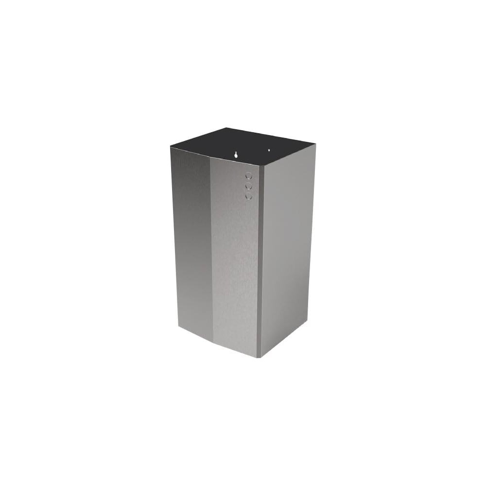 Настенный контейнер для мусора выполнен из нержавеющей стали. Оборудован внутренними крючками для полиэтиленовых пакетов. Корпус контейнера не имеет острых углов, а стенки корпуса имеют толщину 1,0 мм, благодаря этим качествам контейнер настенный считается антивандальным. Две точки крепления к стене. Винты включены.