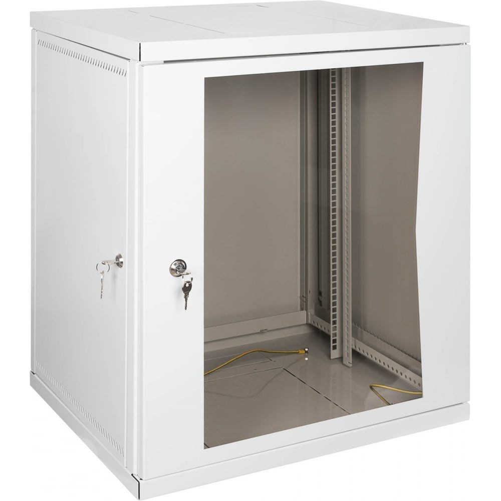 Настенный разборный шкаф КДДС 19", 15U, стеклянная дверь, 600x450, серый УТ000003580 предназначен для размещения активного и пассивного телекоммуникационного оборудования и удобен для организации сетей требующих частого обслуживания, перекоммутации и добавления активного и пассивного оборудования. Максимальная допустимая распределенная нагрузка на шкаф составляет до 35 кг. Глубину установки оборудования на монтажных направляющих внутри шкафа можно изменять благодаря отверстиям на боковой раме с шагом 12,5мм. Для фиксации на вертикальной поверхности(стена) в задней стенке предусмотрены 4 вертикальных паза шириной 8мм с круговым центральным расширением под диаметр 14мм.