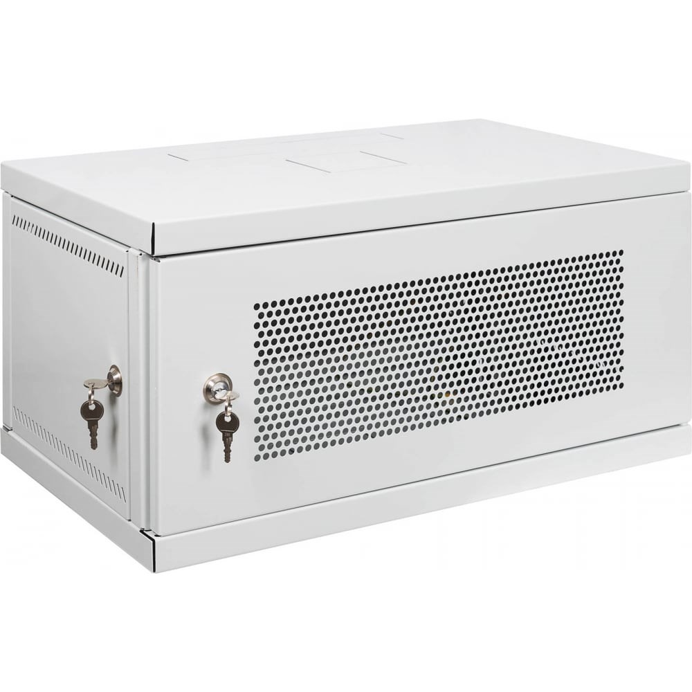 Настенный разборный шкаф КДДС 19", 6U, ПЕРФОРИРОВАННАЯ дверь, 600x350, серый УТ000004356 предназначен для размещения активного и пассивного телекоммуникационного оборудования и удобен для организации сетей требующих частого обслуживания, перекоммутации и добавления активного и пассивного оборудования. Максимальная допустимая распределенная нагрузка на шкаф составляет до 35 кг. Глубину установки оборудования на монтажных направляющих внутри шкафа можно изменять благодаря отверстиям на боковой раме с шагом 12,5мм. Для фиксации на вертикальной поверхности(стена) в задней стенке предусмотрены 4 вертикальных паза шириной 8мм с круговым центральным расширением под диаметр 14мм. Поставляется в разобранном виде! Производитель имеет право вносить изменения в конструкцию изделия без ухудшения его функциональных характеристик.