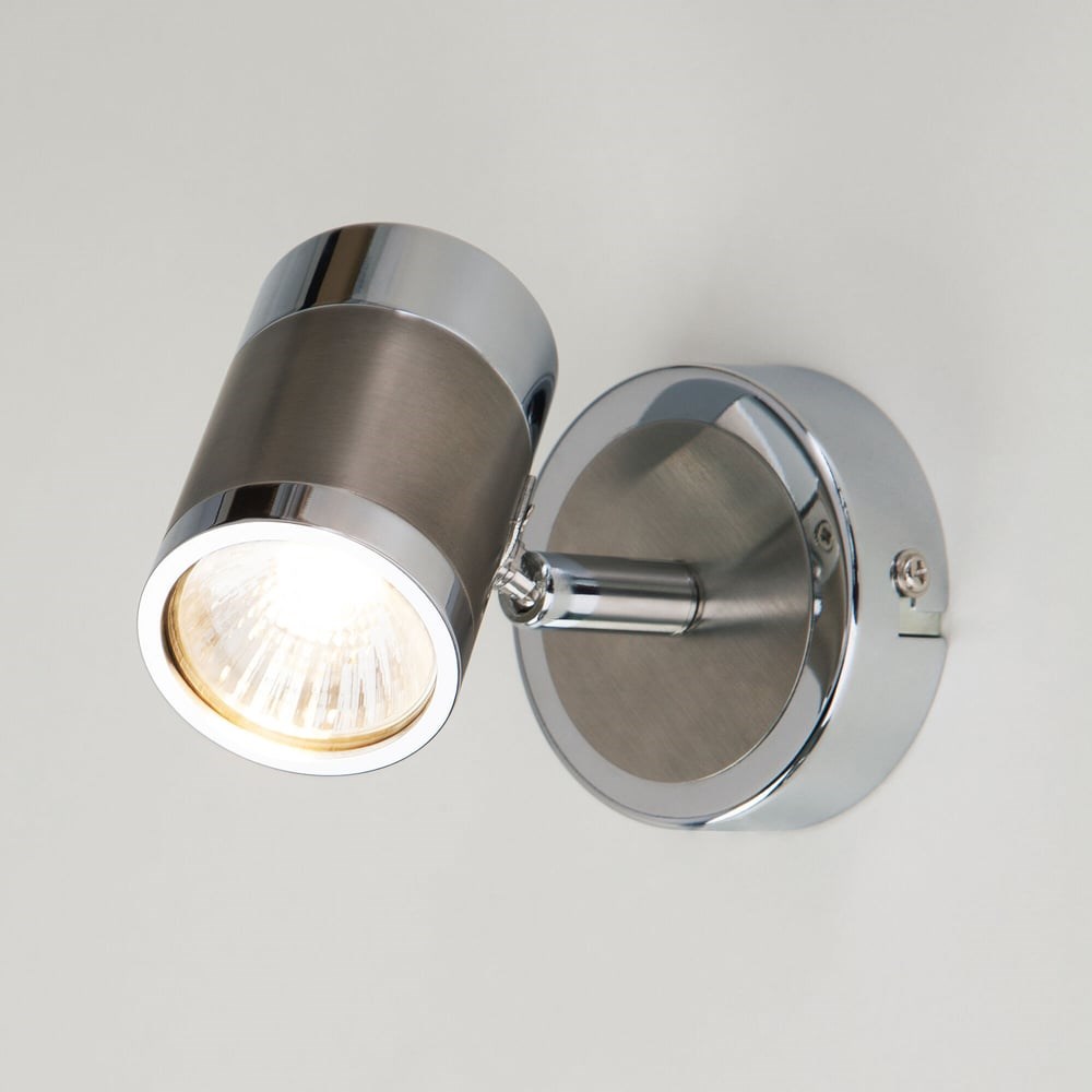 Настенный светильник с поворотными плафонами 20058/1 перламутровый сатин создаст качественное дополнительное освещение и станет ярким дополнением к основному источнику света. Благодаря поворотному металлическому плафону можно направлять световой поток в нужном направлении. В качестве источника света используются сменные лампы с цоколем GU10.Патрон рассчитан на максимальную мощность ламп накаливания 50 Вт. Корпус светильника выполнен из высококачественного и прочного металла с надежным покрытием. Настенный светильник легко монтируется при помощи крепежной планки, которая обеспечивает надежную фиксацию светильника на стене.