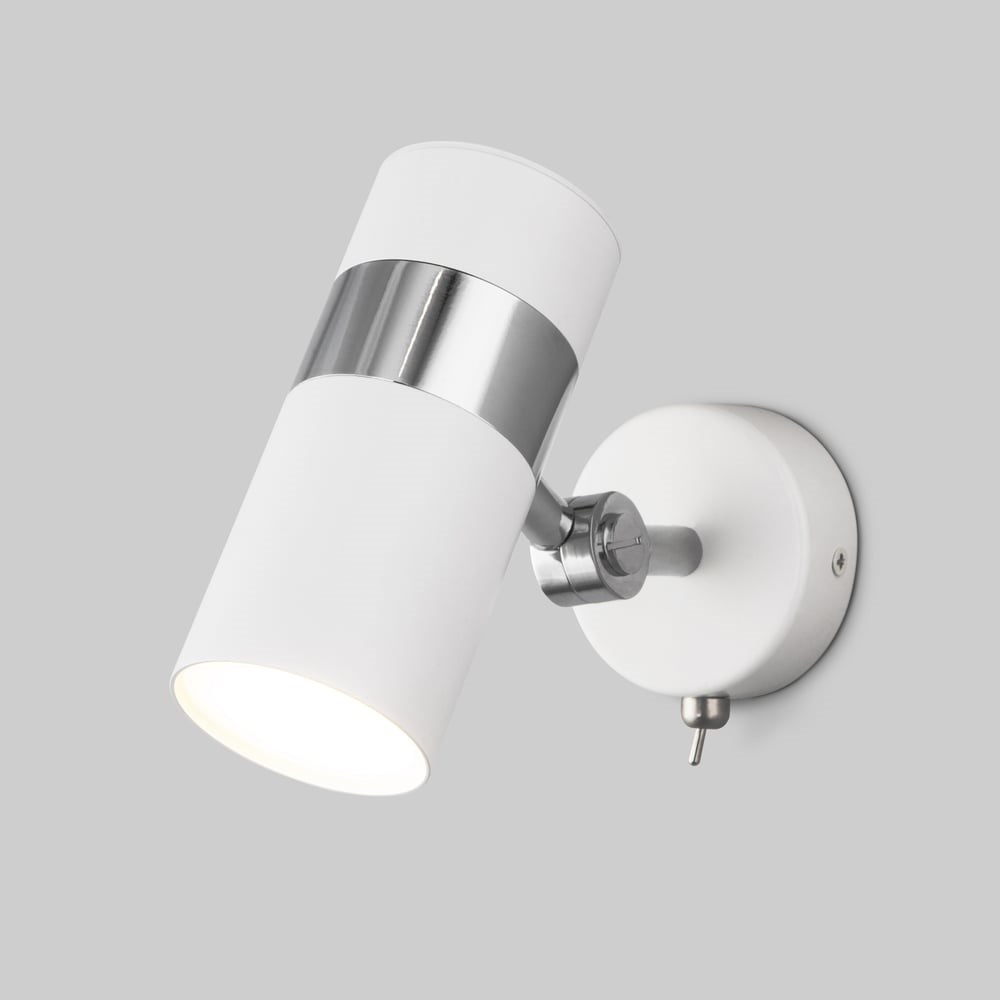Настенный светильник Eurosvet 20096/1 белый/ хром a053052 создаст качественное дополнительное освещение и станет ярким дополнением к основному источнику света. Благодаря поворотному металлическому плафону можно направлять световой поток в нужном направлении. В качестве источника света используются сменные лампы с цоколем GU10. Патрон рассчитан на максимальную мощность ламп накаливания 35 Вт. Корпус светильника выполнен из высококачественного и прочного металла с надежным покрытием. Бра легко монтируется при помощи крепежной планки, которая обеспечивает надежную фиксацию светильника на стене.