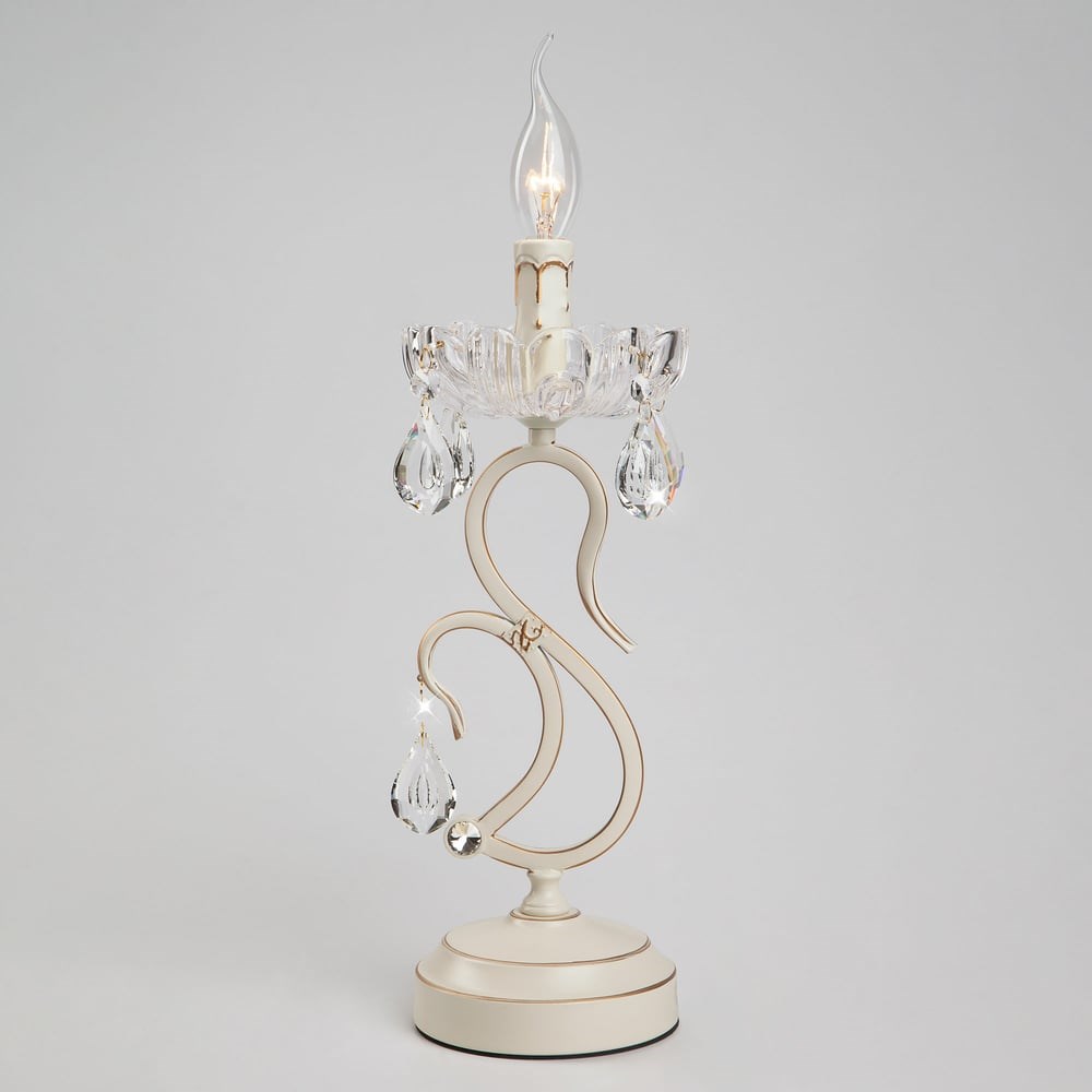 Настольная лампа 12205/1T белый является необходимым атрибутом для создания качественного освещения настольного рабочего пространства и может использоваться как дополнительный источник света в прикроватной зоне. В светильнике используется сменная лампа E14 с рекомендованной максимальной мощностью 40Вт.Прочный металлический корпус светильника устойчив к механическим воздействиям, а защитное покрытие обеспечивает надежную электроизоляцию и презентабельный внешний вид. Лампа украшена декоративным хрусталем, выполненным из особого стекла с эффектной огранкой.