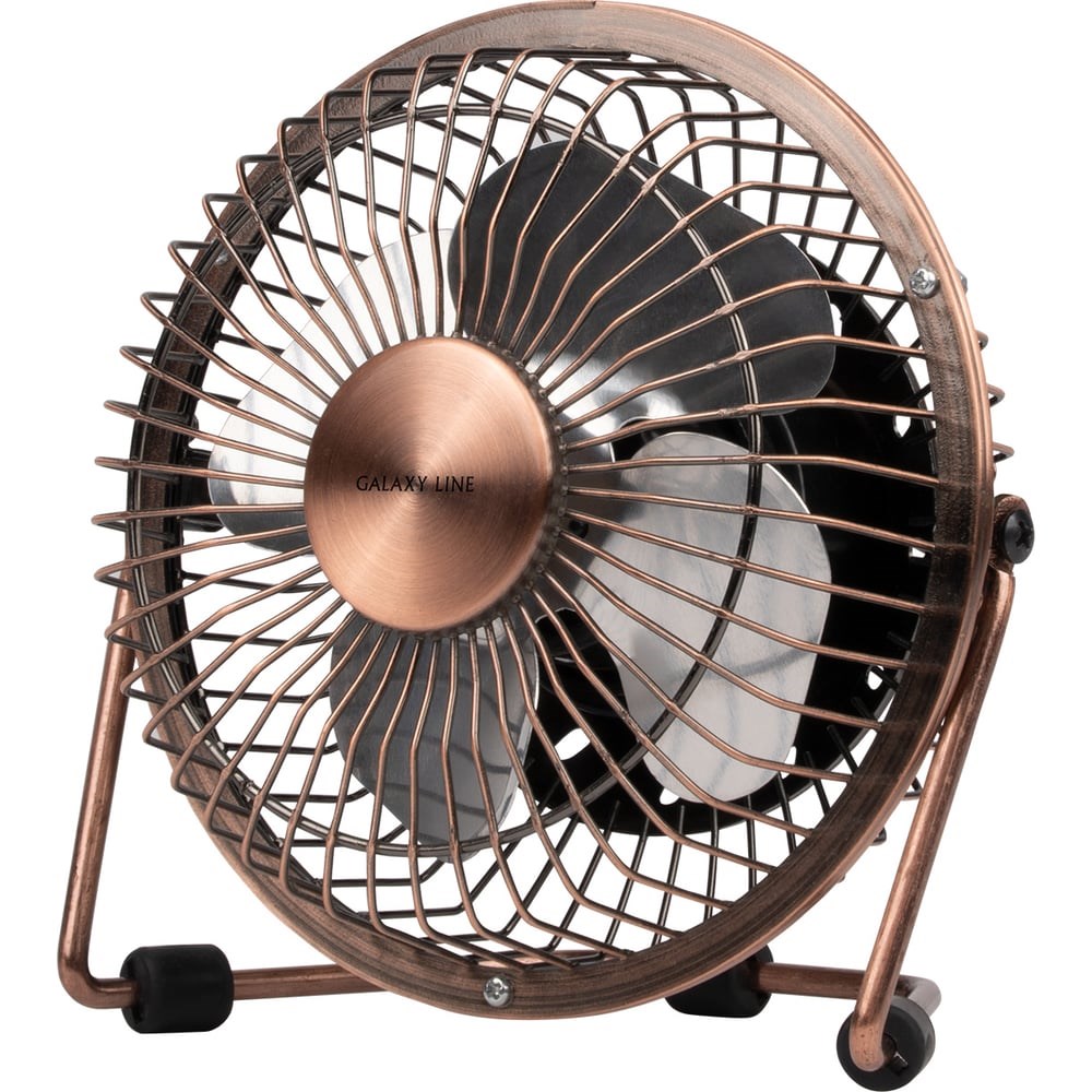 Настольный вентилятор Galaxy LINE 5 Вт гл8152л предназначен для охлаждения помещения в жаркое время года. Прибор работает от USB-провода длиной 113 см. Основное преимущество данной модели - это возможность подключения вентилятора к внешнему аккумулятору, ноутбуку и компьютеру. Компактные размеры вентилятора позволяют установить его на самой небольшой поверхности рядом с компьютером и комфортно работать в любом удобном месте. 4 широкие алюминиевые лопасти и регулируемый угол наклона корпуса на 360° позволяют создать поток воздуха с эффектом естественного бриза. Низкий уровень шума 50 дБ обеспечивает безопасную и комфортную эксплуатацию.