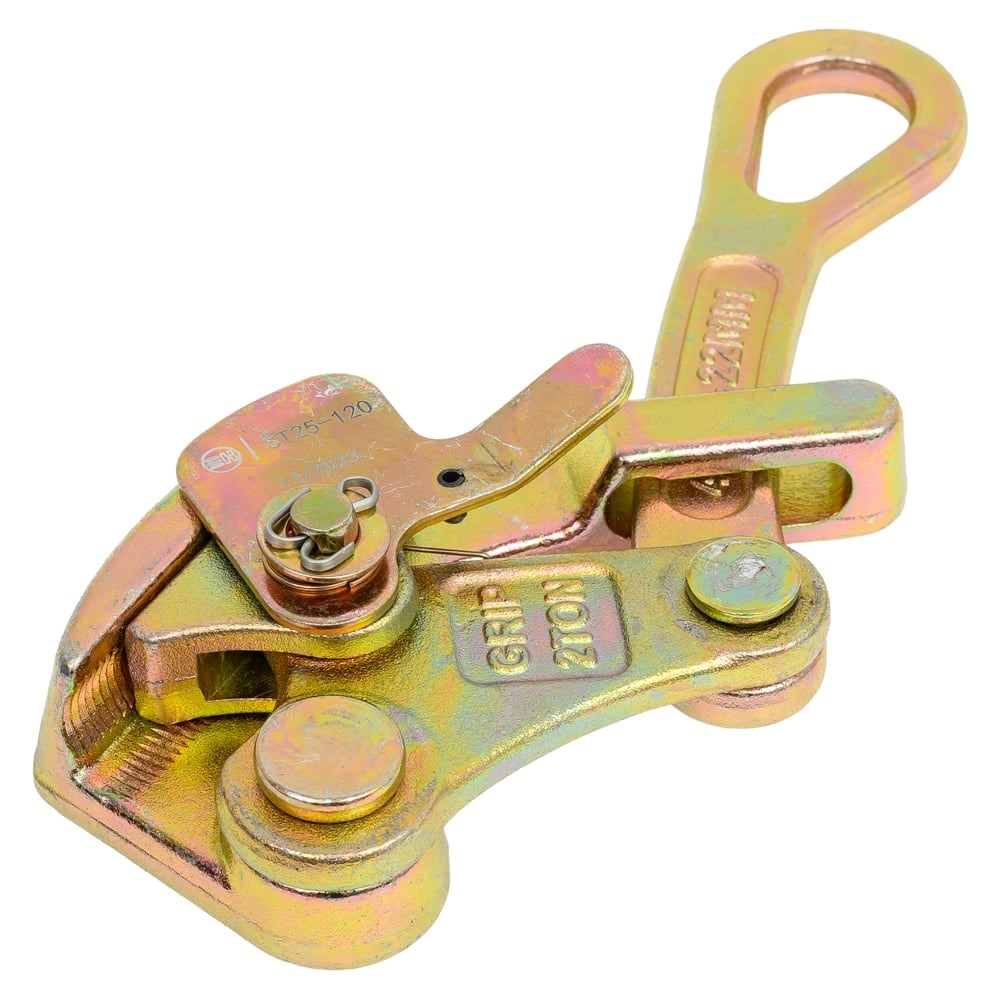 Монтажный зажим предназначен для удержания проводников круглого сечения при изменении тяжения на электроустановках. Зажим представляет собой шарнирно-губцевое подпружиненное соединение с контактными площадками. Контактные площадки имеют вогнутые плоскости с накаткой для лучшего удержания проводников. Статическая нагрузка максимальная, кг - 2000.