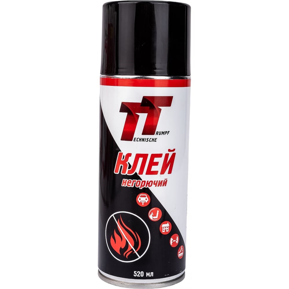 Клей не горючий ТТприменяется: в производстве мягкой мебели и при изготовлении матрасов; в автомобильной промышленности для склеивания вспененного полиуретана (поролона), как между собой, так и для соединения с кокосовой койрой, латексными ППУ; для склеивания шерстяных, войлочных и различных нетканых материалов с деревом, металлом и пластиком. Состав Синтетический эластомер в органических растворителях, модифицированный органическими смолами. Свойства Не воспламеняется Прозрачный (от янтарного до красного цвета) Эластичный шов Хорошая начальная схватываемость Технические характеристики Плотность 1,12 – 1,15 г/см3 Время открытой выдержки от 30сек до 10мин Время кристализации 24 часа