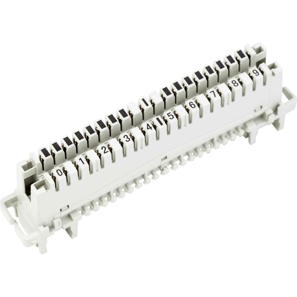 Неразмыкаемый плинт RETIC LSA Profil ABS, 10 пар, медные контакты LSA-D-C-09-TWCS предназначен для коммутации абонентских или соединительных телефонных линий. Является составной частью оконечного кабельного устройства и устанавливается в телефонных боксах, коробках и шкафах на монтажные хомуты. Имеет 10 пар гнезд. Соединение кабелей осуществляется с внешней стороны плинта при помощи специальных однопарных вилок, с внутренней стороны происходит распределение телефонных пар по номерам абонентов. Представляет собой пластиковую конструкцию, у которой с одной стороны подключается десятипарный кабель, а с другой стороны медные пары разводятся на конкретных абонентов. В конструкции размыкаемого плинта предусмотрена возможность установки грозозащиты. Дополнительные характеристики: Горючесть соответствует стандарту GB/T 5169.7-19854. Количество пар 10 пар (нумерация 0-1...8-9). Использование - максимум 200 циклов. Диаметр металлического проводника: 0,4-0,6 мм. Температура от -5 до +40 ⁰C. Уровень влажности менее 85% (+ 30 ⁰С). Атмосферное давление 70-106 кПа. Сила извлечения не менее 25Н.