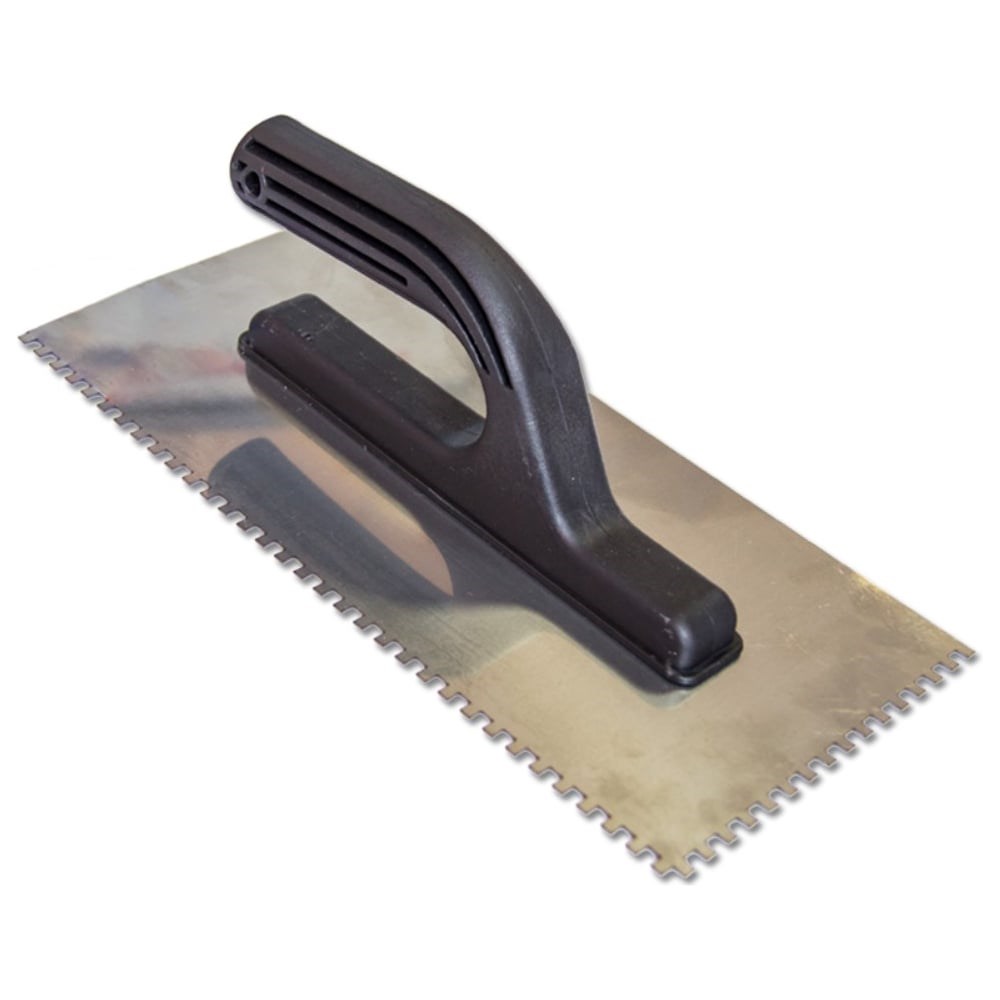 Нержавеющая гладилка НАШ ИНСТРУМЕНТ 130 мм х 270 мм, зуб 4х4, пластиковая ручка 020106-270-004