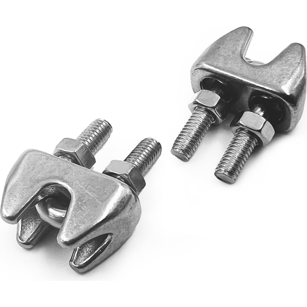 Зажим для троса с двумя гайками АРТ 9074 из нержавеющей стали А4* предназначен для скрепления между собой двух концов троса – при формировании петли и при сращивании двух отрезков троса. Для надёжного скрепления обычно требуется установка 2 или 3 зажимов одновременно. Коррозионная стойкость стали А4 позволяет использовать зажимы из неё практически в любых климатических условиях, в широком интервале температур и в агрессивных кислых средах. Нержавеющая сталь А4 не притягивается магнитом. Однако допускается проявление заметной магнитности у готовых изделий в результате обработки*. ГОСТ ISO 3506-2014