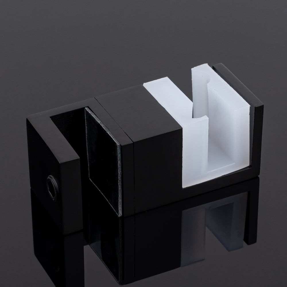 Нижняя направляющая применяется в раздвижных душевых кабинах из каленого стекла.