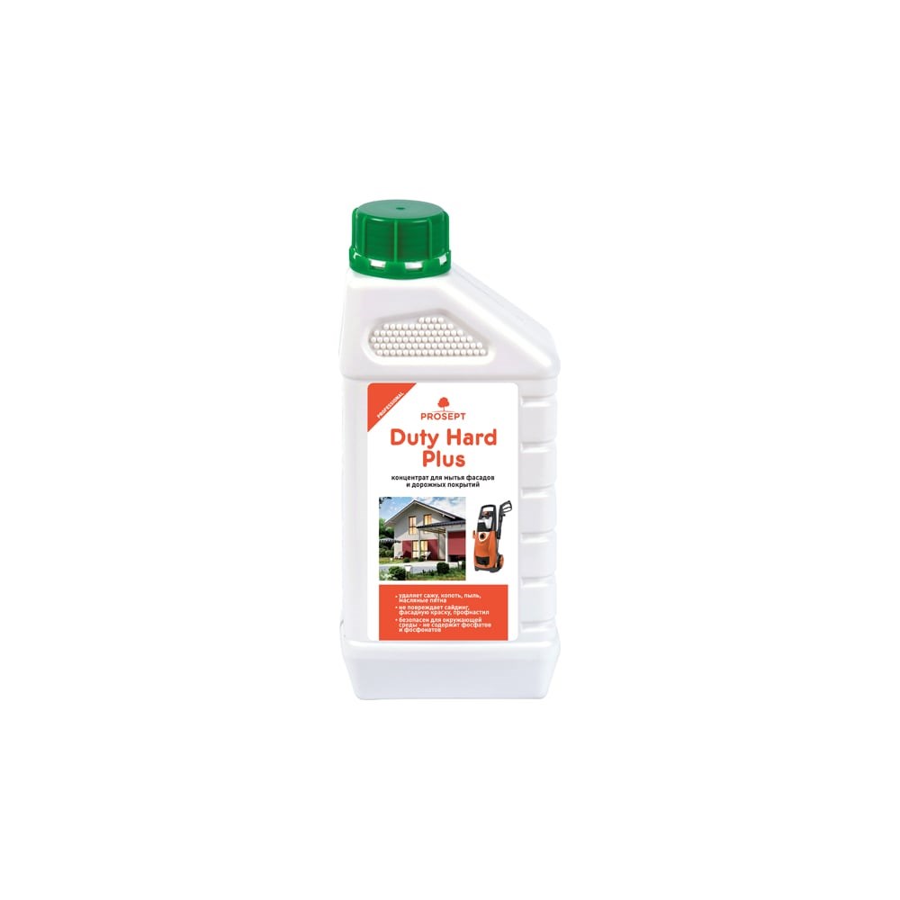 Щелочный низкопенный концентрат PROSEPT Duty Hard + 1 л 278-1 для мытья фасадов зданий и сооружений, различных строительных конструкций, подземных переходов, дорожных покрытий.Быстро растворяется в воде, хорошо обезжиривает и очищает поверхности.Удаляет сажу, копоть, пыль, масляные пятна, а также атмосферно-почвенные загрязнения с любых типов поверхностей.Эффективно в воде любой жесткости и температуры.Применение:Рекомендованная дозировка 10-50 мл/л, исходя из степени загрязнения поверхности.Рабочий раствор нанести на 1-2 минуты, растереть при необходимости и, не допуская высыхания смыть водой.Температура моющего раствора от 5 до 50°С.Использование небольших концентраций рабочего раствора менее 10 мл на 1 л воды не требует смывания, за исключением стеклянных, глянцевых и полированных поверхностей, на которых могут остаться разводы.При сильных загрязнениях обработку повторить.