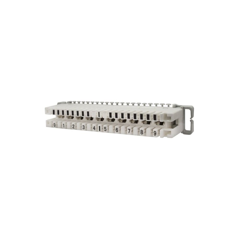 Плинт SUPRLAN, с размыкаемыми контактами на 10 пар, нормальнозамкнутый, маркировка 0-9 10-0502 предназначен для построения сетей телефонной связи и может передавать сигналы как аналоговых, так и цифровых телефонных аппаратов. Допускает передачу данных иной низкоскоростной аппаратуры. Представляет собой его основную коммутационную единицу телефонного кросса. Коммутация на плинтах осуществляется станционными кабелями, кроссировочным проводом и однопарными вилками специальной конструкции. IDC-контакты размыкаемого типа имеют Y-образную структуру, что дает возможность в процессе эксплуатации очень просто осуществлять параллельное соединение отдельных пар. Элементы организации проводов кабелей и кроссировки выполнены в форме небольших интегральных разрезных пластиковых колец на узкой стороне корпуса и пластиковых направляющих на обоих боковых поверхностях. Упрощение разводки отдельных пар по контактам достигнуто окраской торцевой поверхности разделительных пластиковых направляющих. Для установки на стандартные посадочные места конструктива телефонного кросса на основании корпуса плинта предусмотрены соответствующие пластиковые зажимы. Плинт с размыкаемыми контактами SUPRLAN позволяет дополнительно установить грозозащиту.