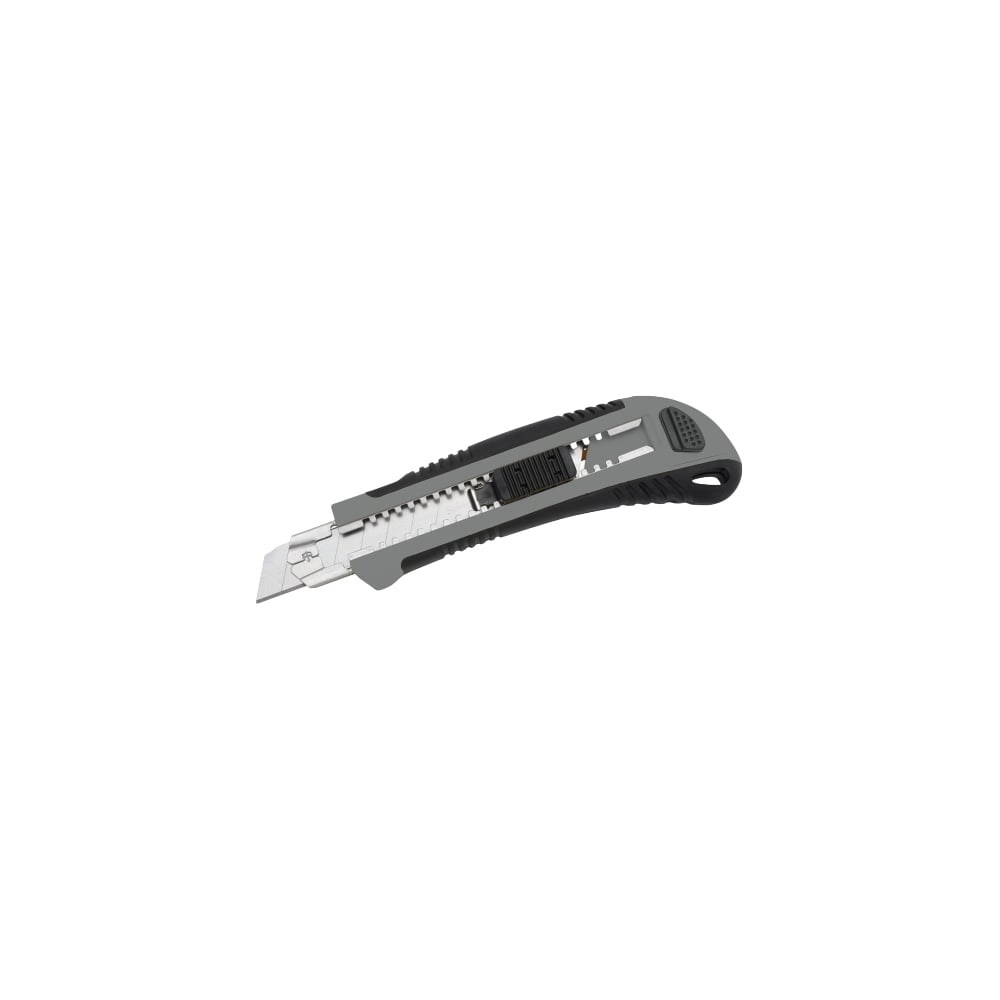 Металлический нож трапециевидным лезвием шириной 18 мм предназначен для резки различных материалов. Особенно рекомендуется для резки ламинированного гипсокартона. Инструмент оснащен 5 трапециевидными лезвиями из высококачественной углеродистой стали, термообработанными для максимальной прочности. Направляющие из нержавеющей стали гарантируют идеальное скольжение лезвия. Корпус изготовлен из цинка и эластомера.