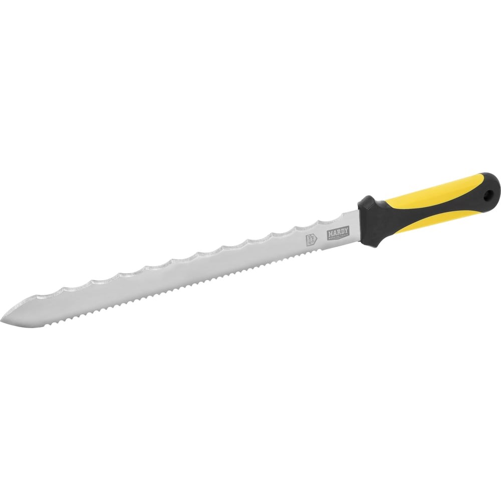 Нож HARDY 280 мм. 0590-600028 для резки изолирующих материалов, минеральной ваты, рулонных и плитных утеплителей, стекловаты, пенопласта, пенополистирольных плит и т.д. Выполнен из нержавеющей стали, что обеспечивает долгий срок службы. Очень острый и прочный. Длина режущей части - 28 см.Удобная двухкомпонентная ручка предотвращает скольжение руки. Две стороны лезвия: волнистая режущая кромка для резки мягкого кровельного утеплителя; кромка с мелкими зубьями – для стенового утеплителя, длинное усиленное лезвие позволяет работать с практически любым видом утеплителя. На рукоятке предусмотрено отверстие для подвешивания ножа при его хранении. В отверстие рукоятки можно вдеть ремешок для повышения безопасности при работе.Для безопасности инструмент поставляется в блистерной упаковке.