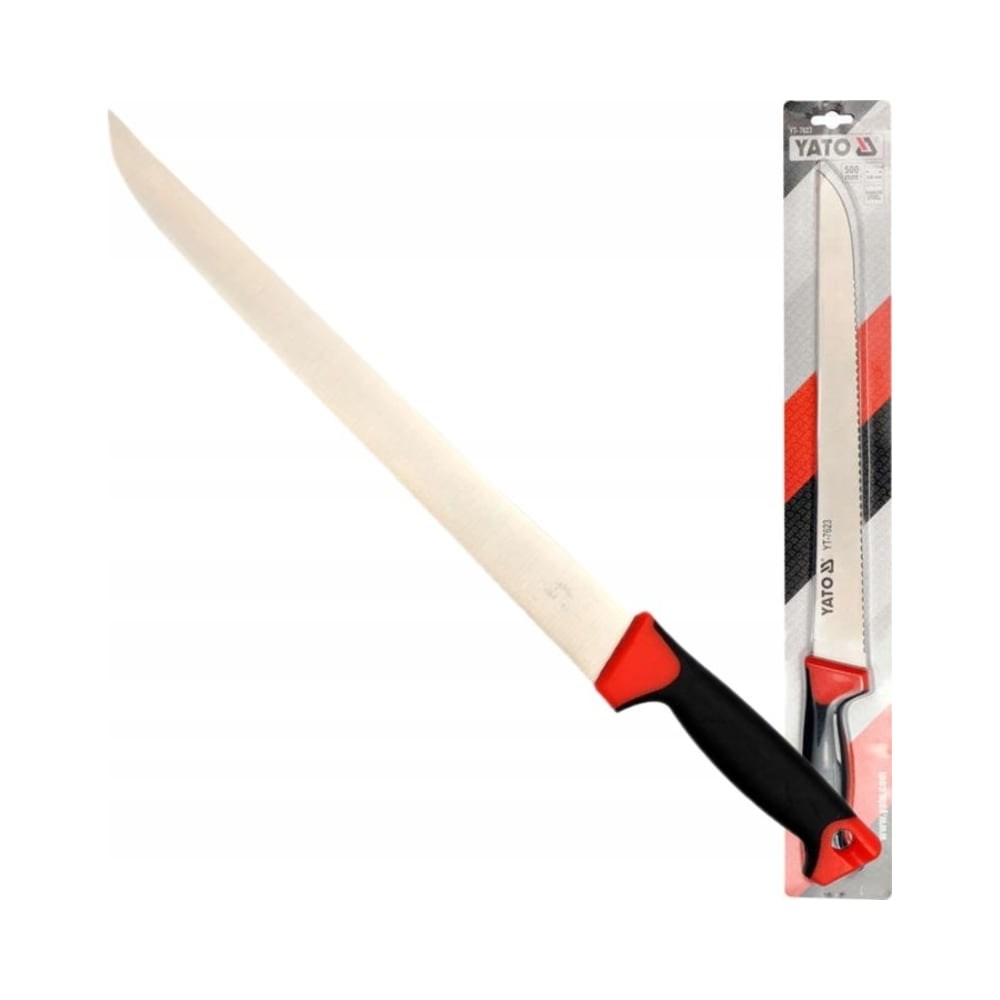 Нож для резки строительной изоляции YATO 500мм YT-7623 применяется для эффективной резки строительной теплоизоляции, особенно рекомендуется для резки рулонов и листов минеральной ваты и пенополистирольных плит.